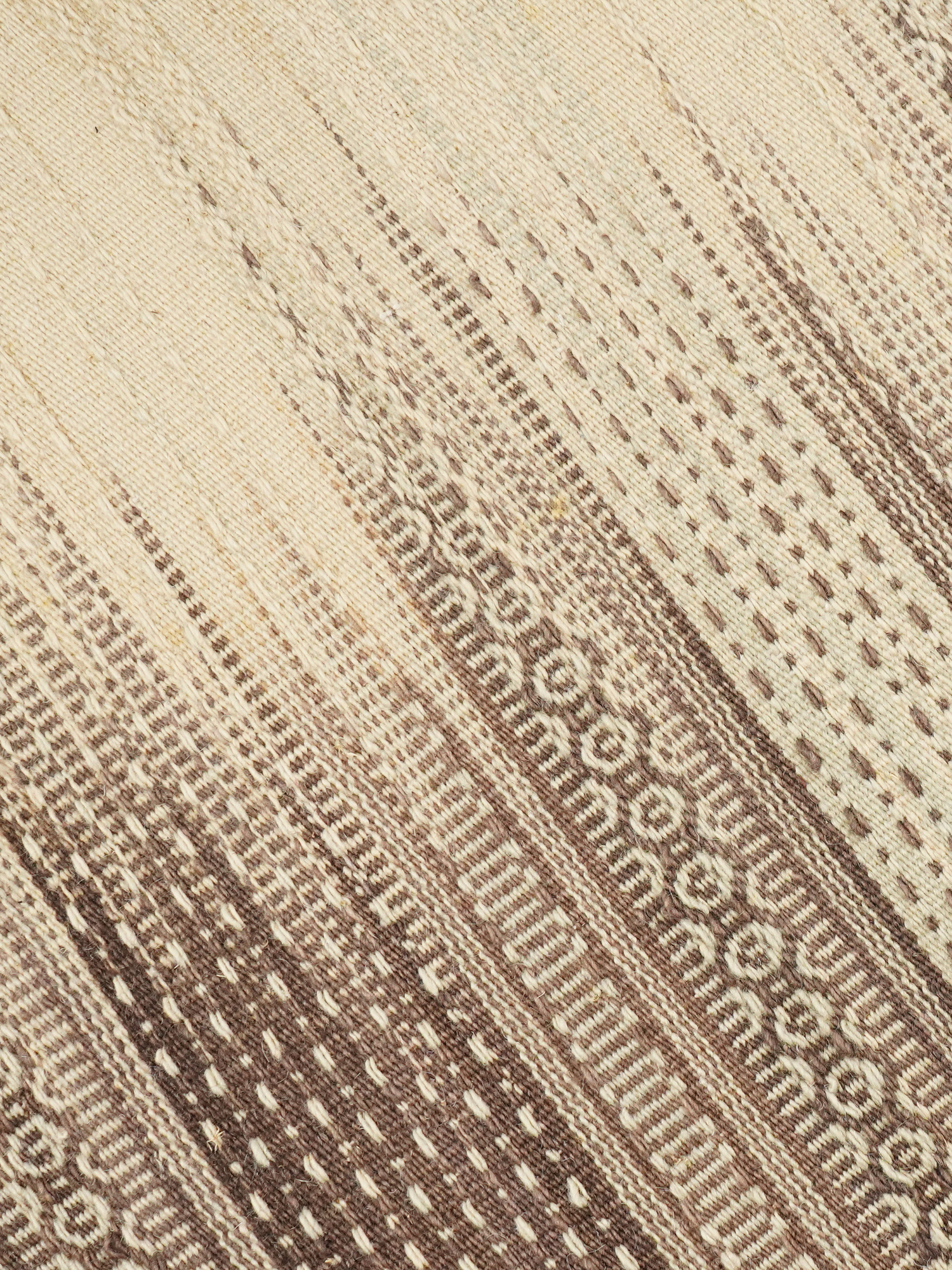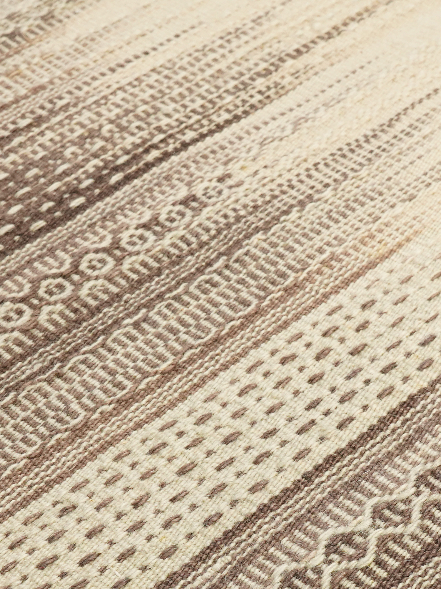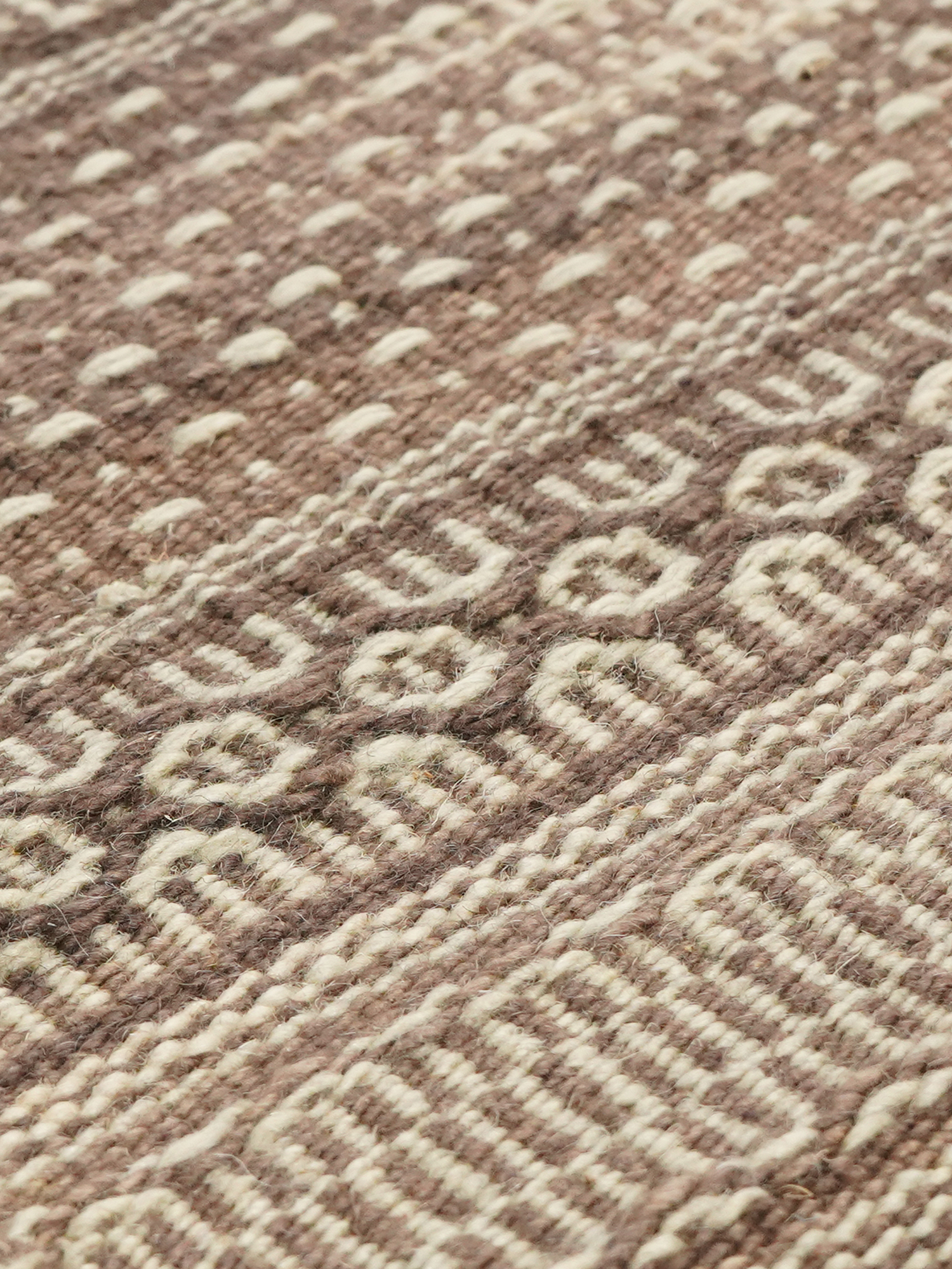 To keep your rug looking its best, shake or lightly beat it to remove dust, and rotate it regularly for even wear. Blot spills immediately with a clean, white cloth, keeping the rug as dry as possible. For tougher stains, professional cleaning is recommended. To preserve its colour and texture, avoid placing it in direct, prolonged sunlight. Do not pull any loose yarns. If needed, simply trim them with scissors so they sit neatly at the same height as the rest of the pile.