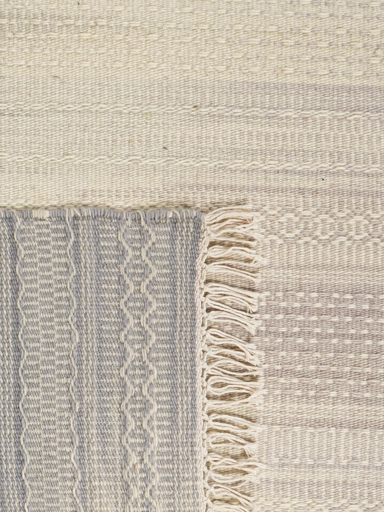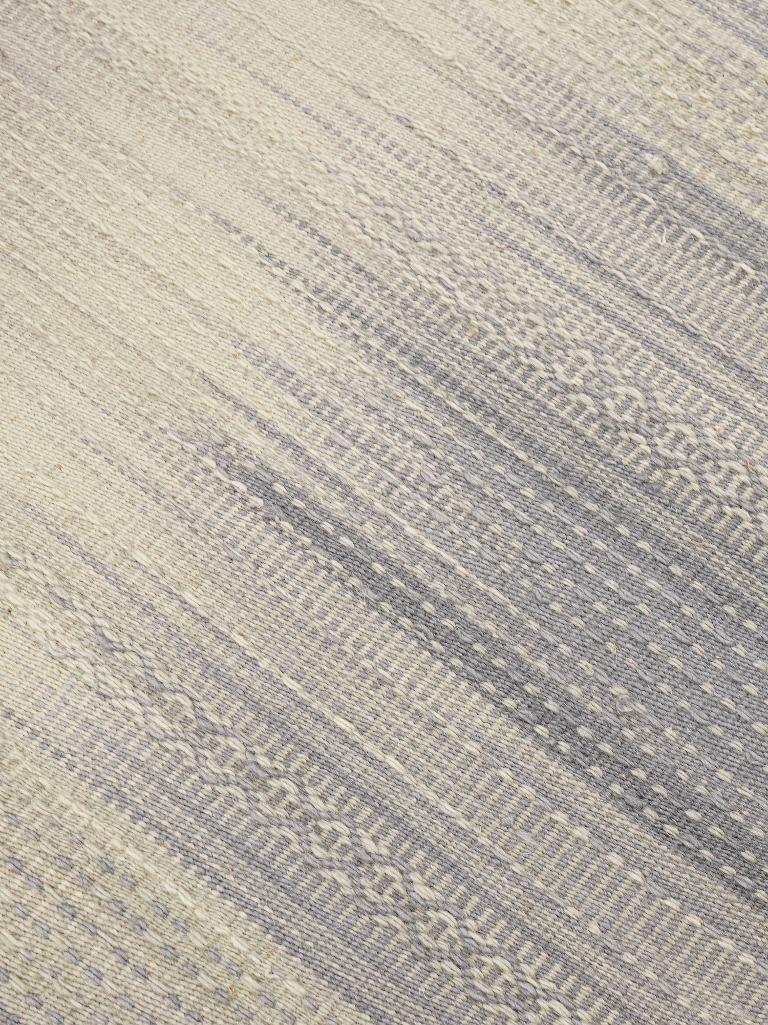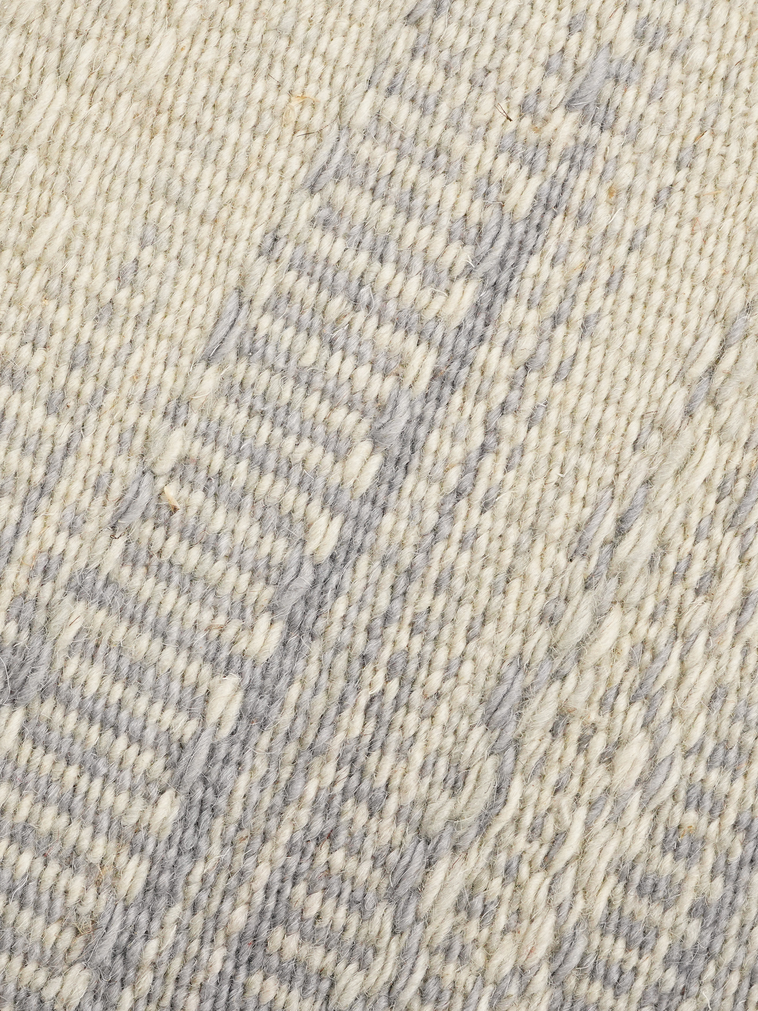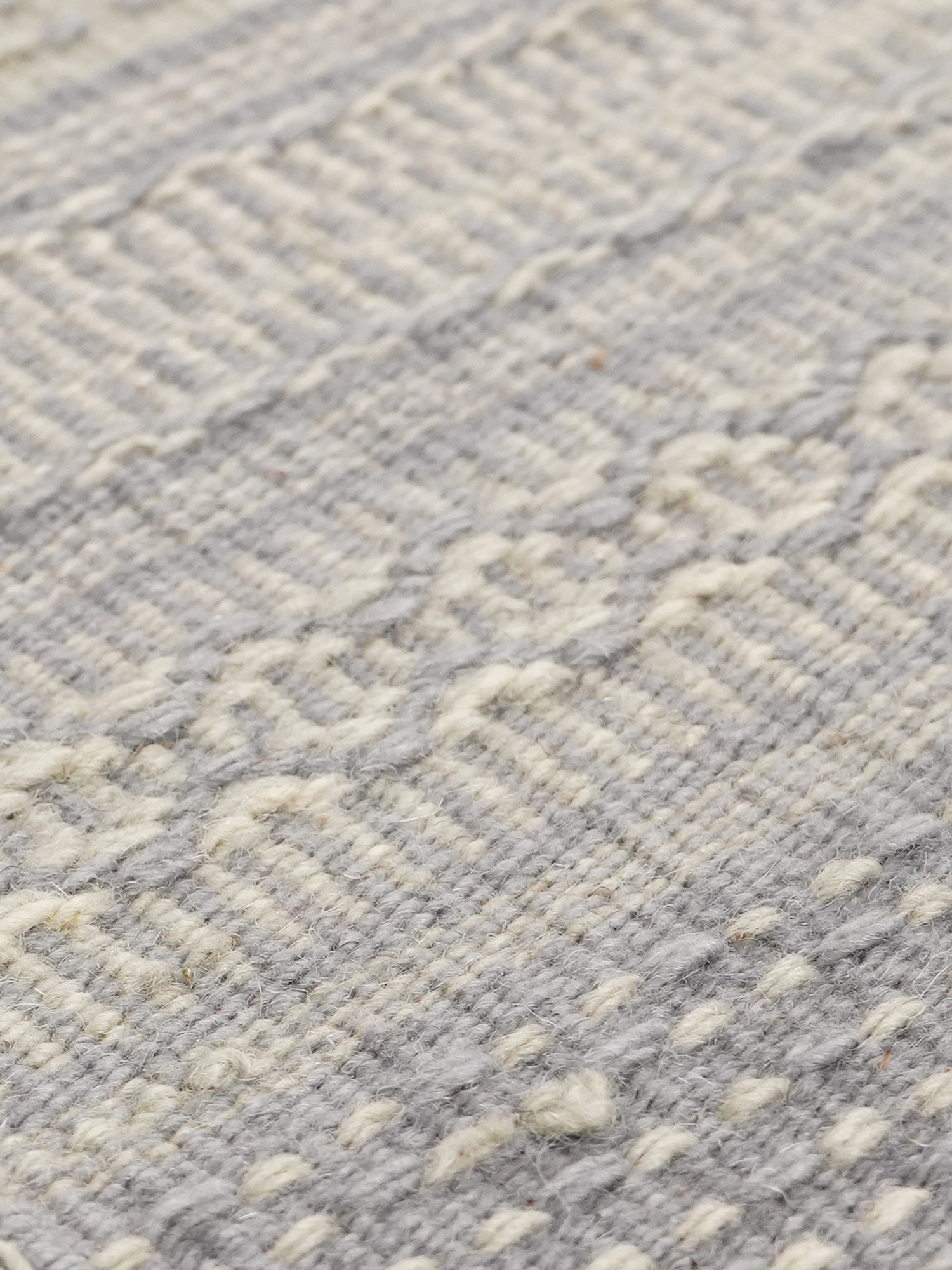 A hand-woven wool rug in soft grey and off-white, crafted to bring pattern and gentle texture to modern interiors.