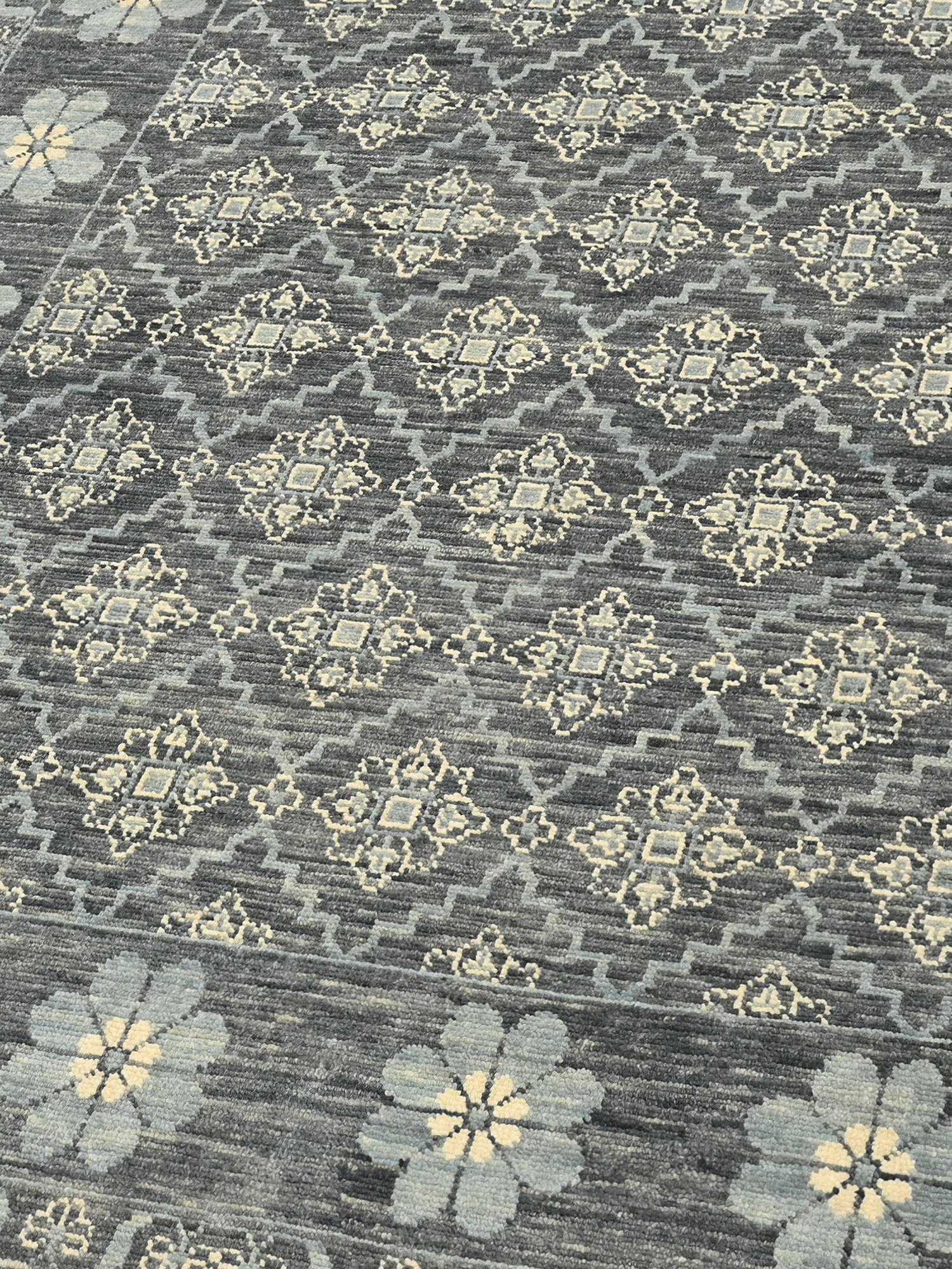 We do our best to show our rug colours and designs accurately, though slight variations may occur due to screen settings and room lighting. Hand-knotted rugs naturally feature small irregularities, subtle dye differences, and size variations of up to ±3%—all part of their handcrafted charm. Each piece is truly unique, made with time, skill, and care.