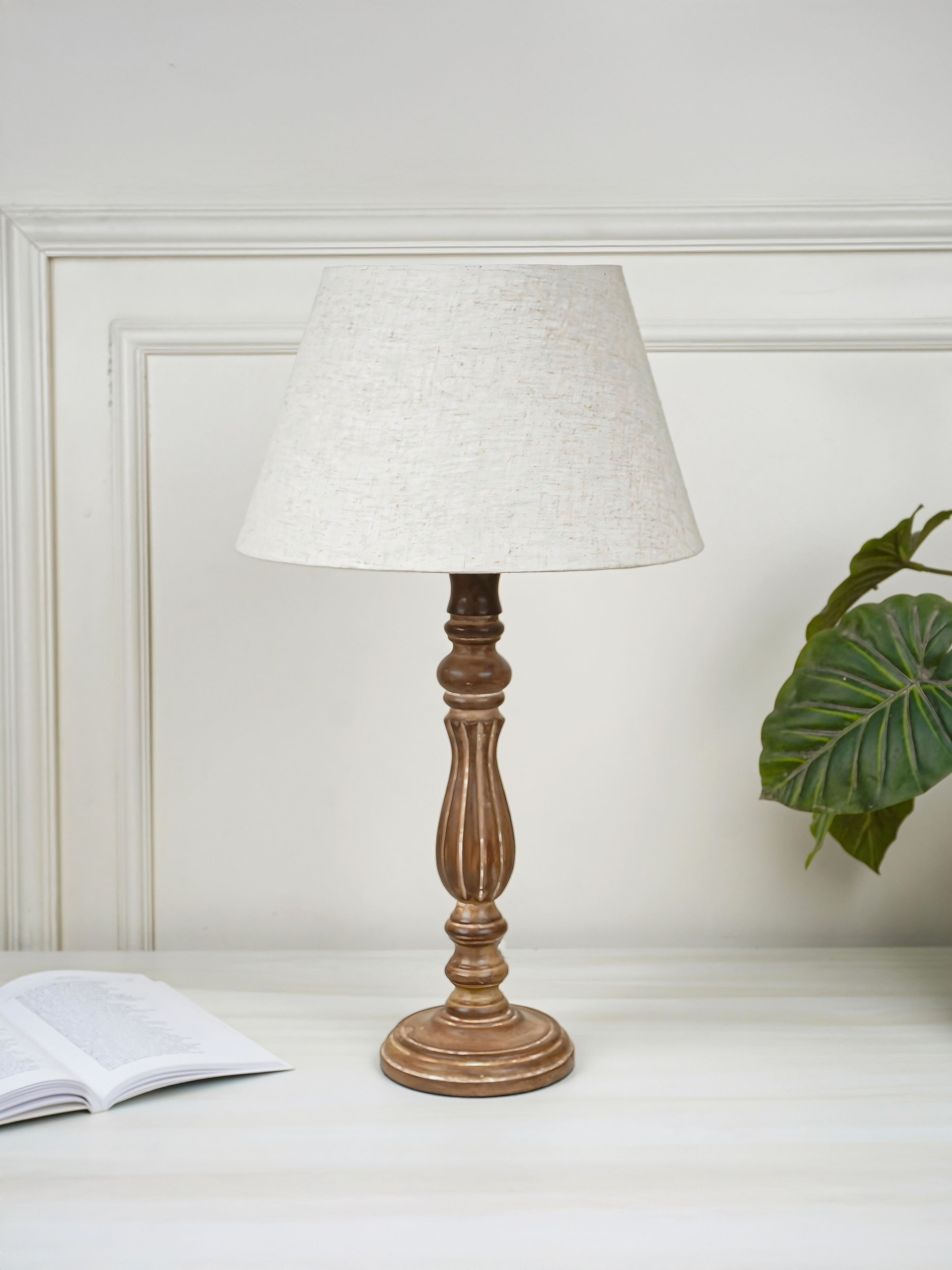 The rich wood base brings a natural warmth, while the crisp ivory shade softens the look with its light texture. The clean curves and classic proportions make Quinn feel timeless, yet fresh.