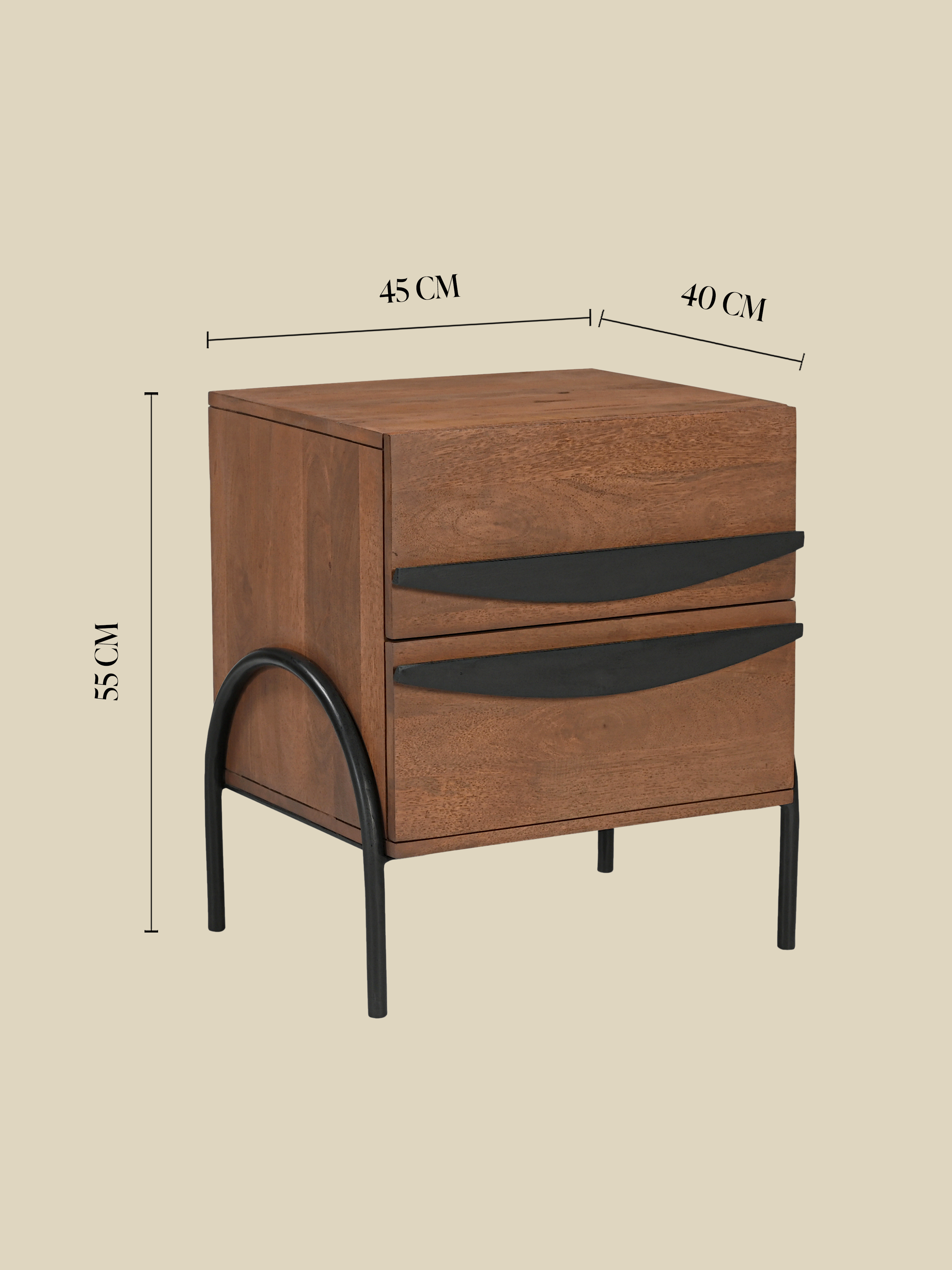 • Two drawers with black wooden handles