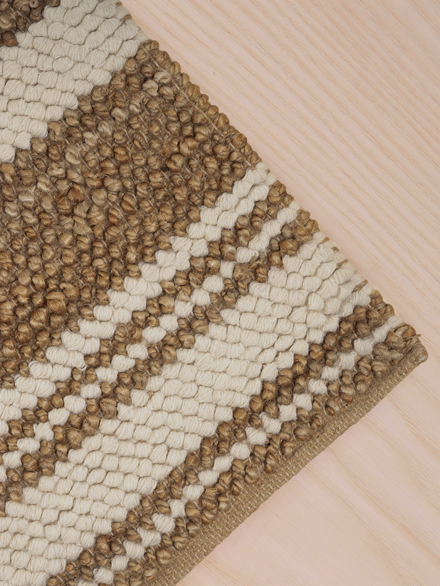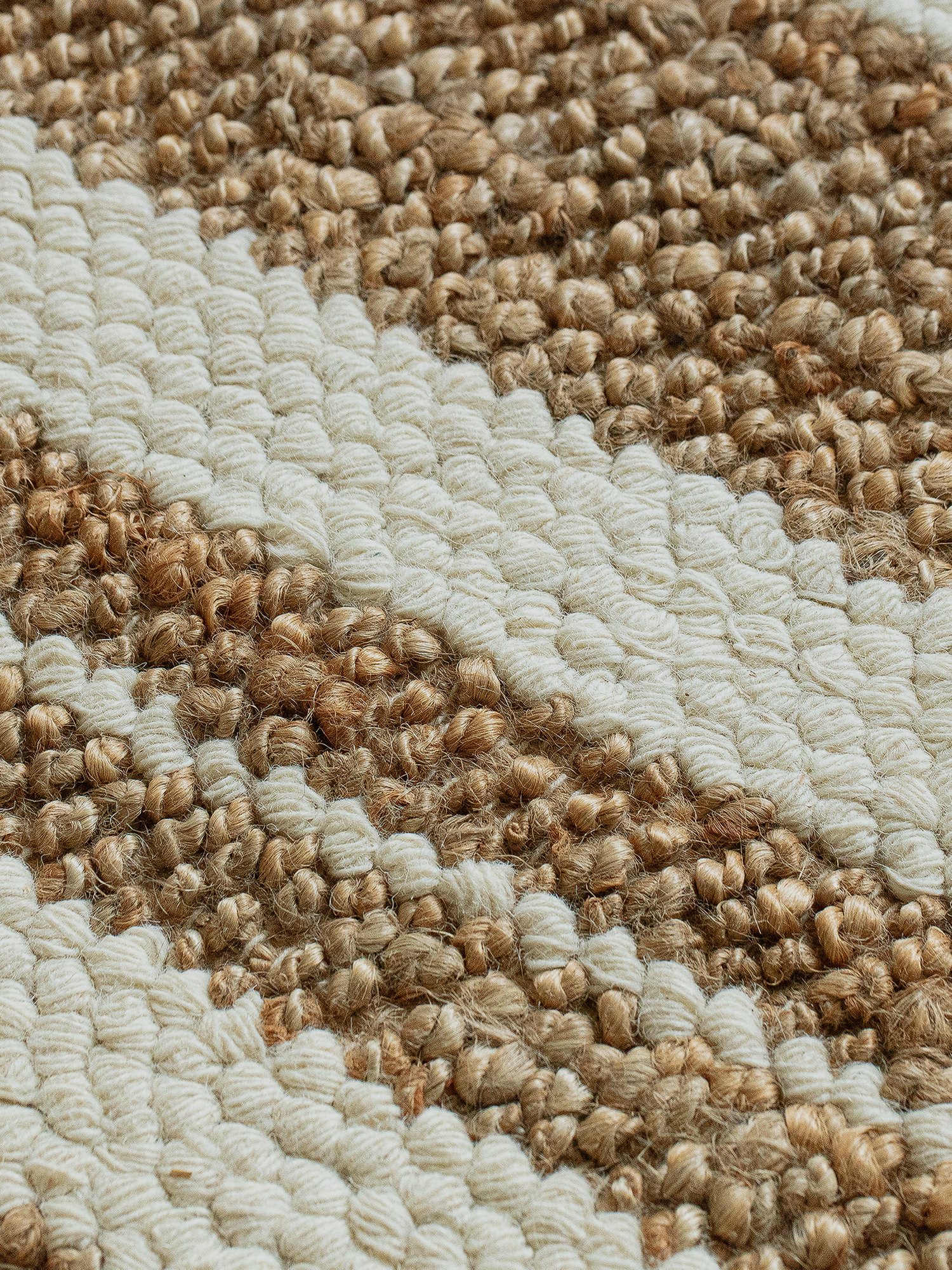 • Crafted from 65% jute, 25% wool, and 10% cotton for durability and softness