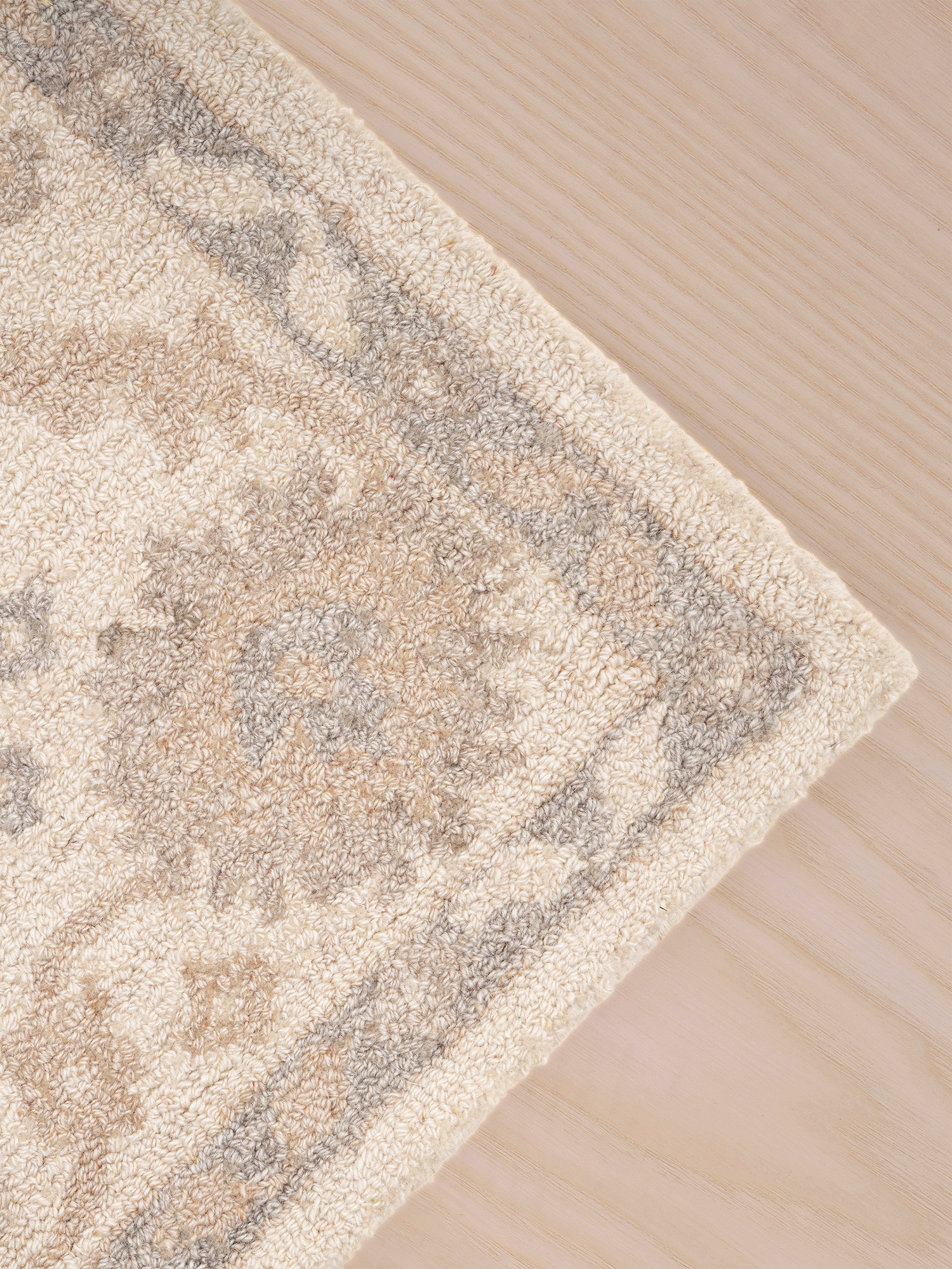 The Mia rug is a timeless ode to Persian artistry, featuring intricate botanical motifs in warm beige and brown hues. Its delicate floral patterns, inspired by traditional Persian carpets, bring a sense of heritage and craftsmanship to any space.