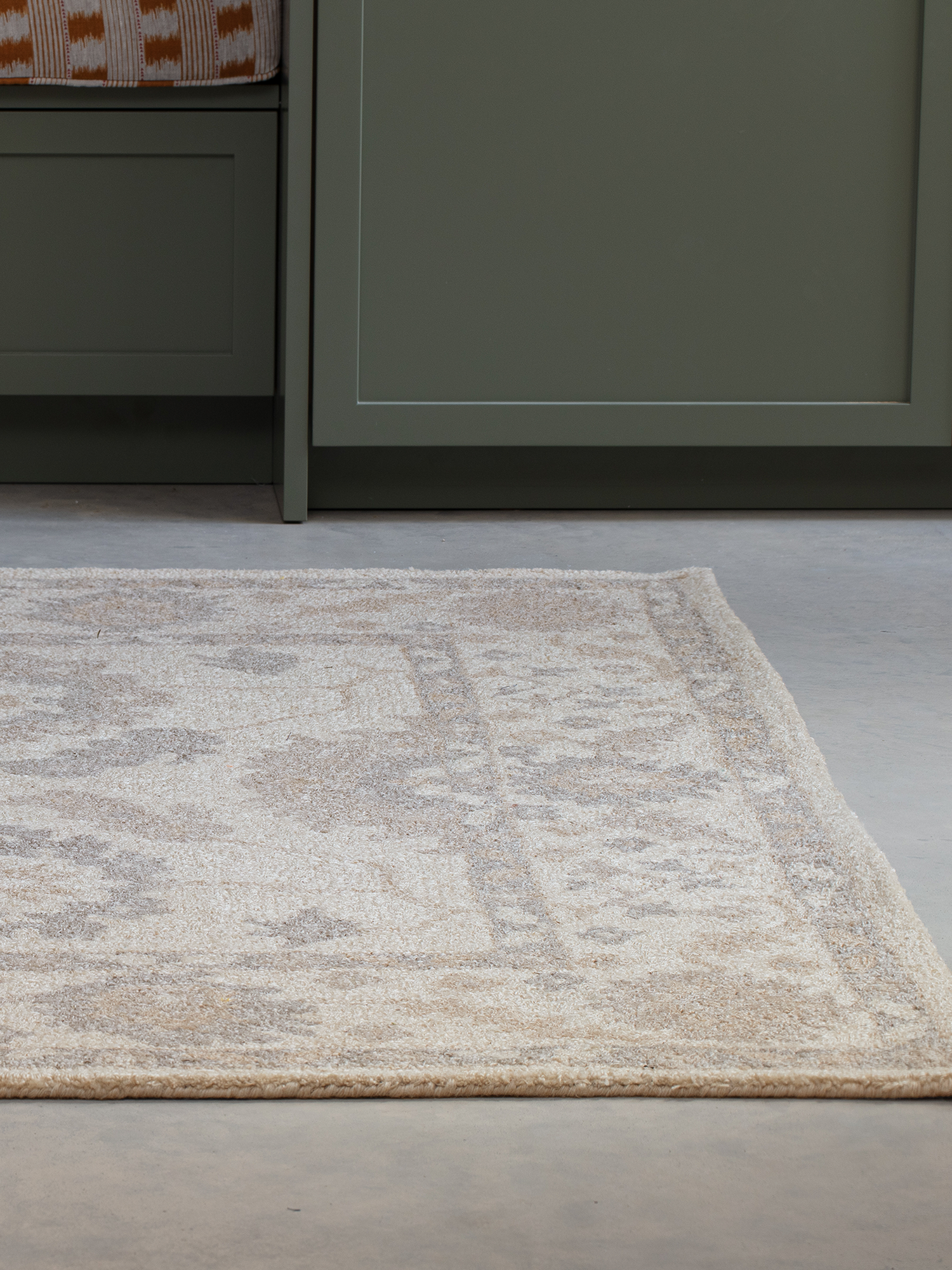 The Mia rug blends traditional Persian design with rustic charm, offering intricate floral patterns in a refined colour palette. Its wool-cotton blend ensures durability while maintaining a soft underfoot feel, making it perfect for high-traffic spaces or cosy retreats. Whether styled in a country home, a vintage-inspired living room, or a modern-rustic space, this rug adds warmth, elegance, and timeless appeal.