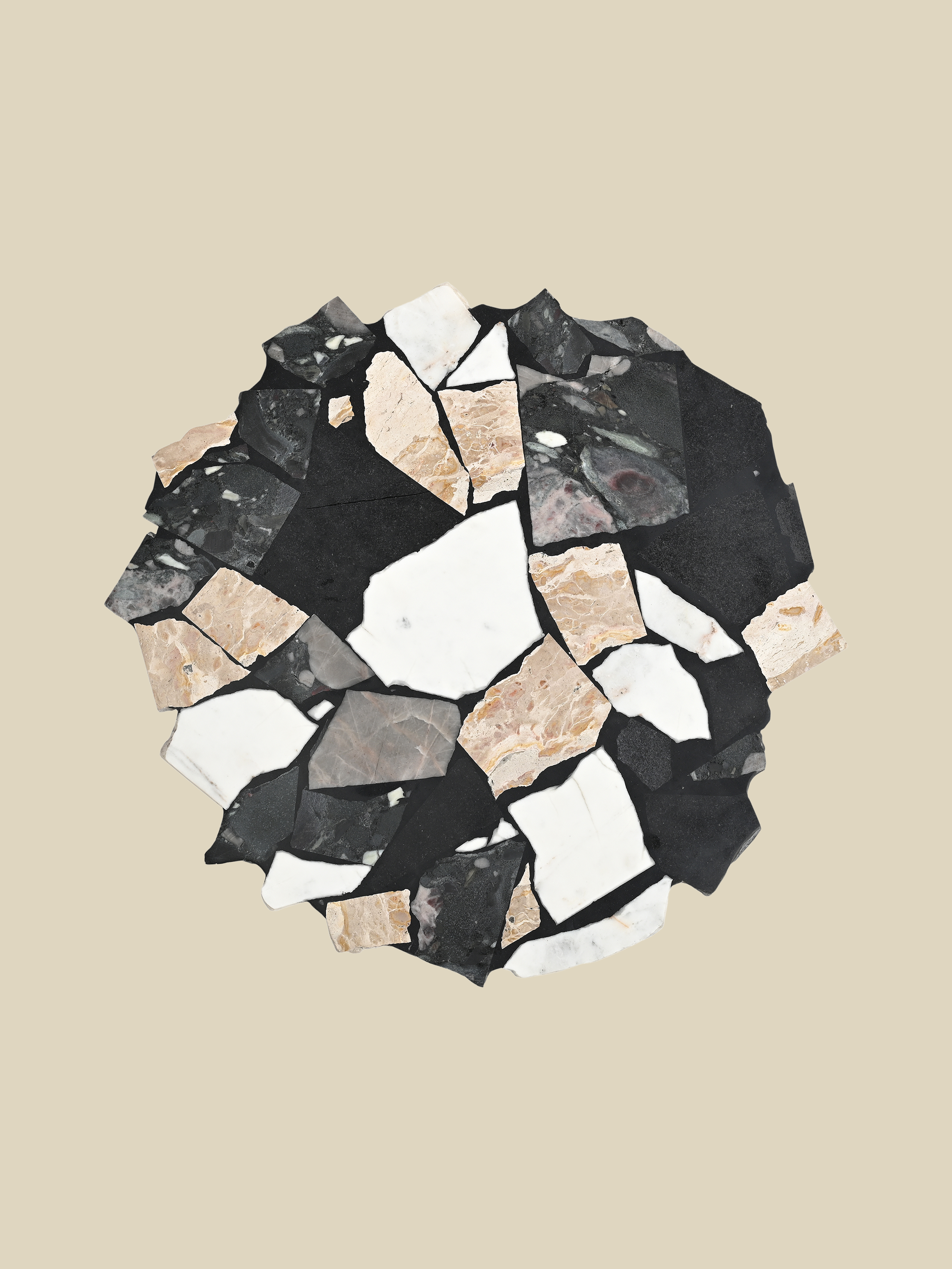• Round terrazzo top with mixed marble fragments for a bold, artistic touch