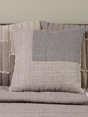 Understated but impactful, the neutral grey and beige hue, slub texture and subtle patchwork give the CosyWhim cushion a naturally lived-in vibe.