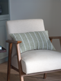 The deep green hue evokes a sense of serenity, while the off-white stripes create a crisp, structured contrast. Style it with wood accents, muted neutrals, or soft greys for a grounded, organic feel, or mix it with charcoal and brass tones for a sophisticated edge.