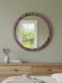 The Ann Mirror is a beautifully round and flat wooden mirror frame. Whether placed over a dresser or used as a wall accent in your living room or entryway, the simple yet sophisticated design adds brightness and style to any space. The hand-painted brown-grey finish keeps the look modern and easy to blend with any décor style.