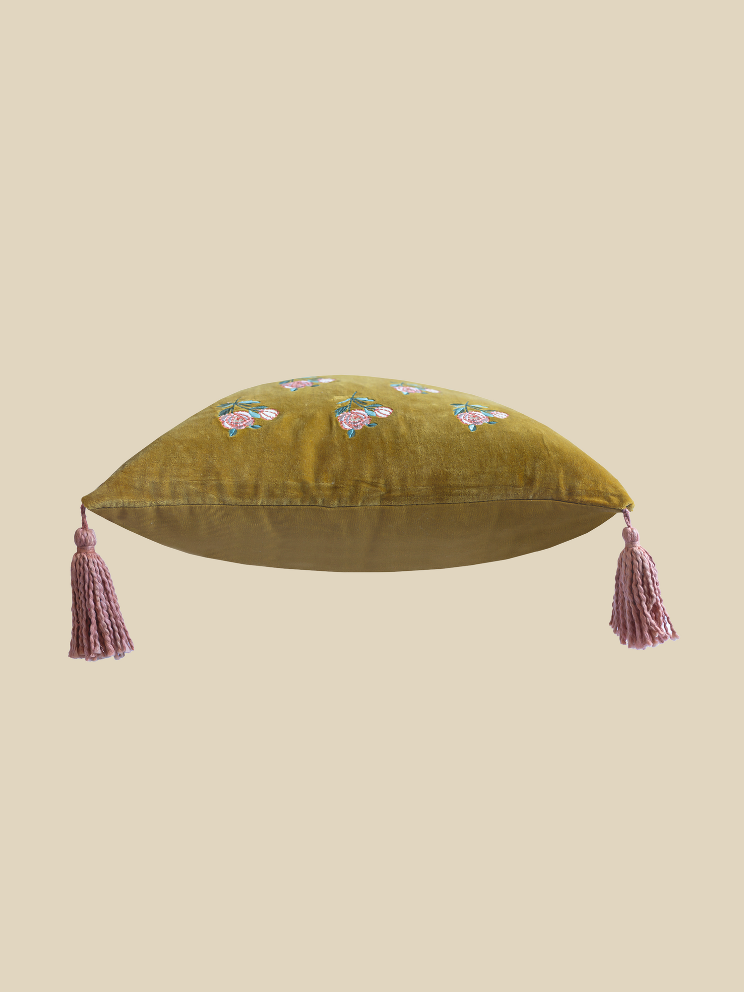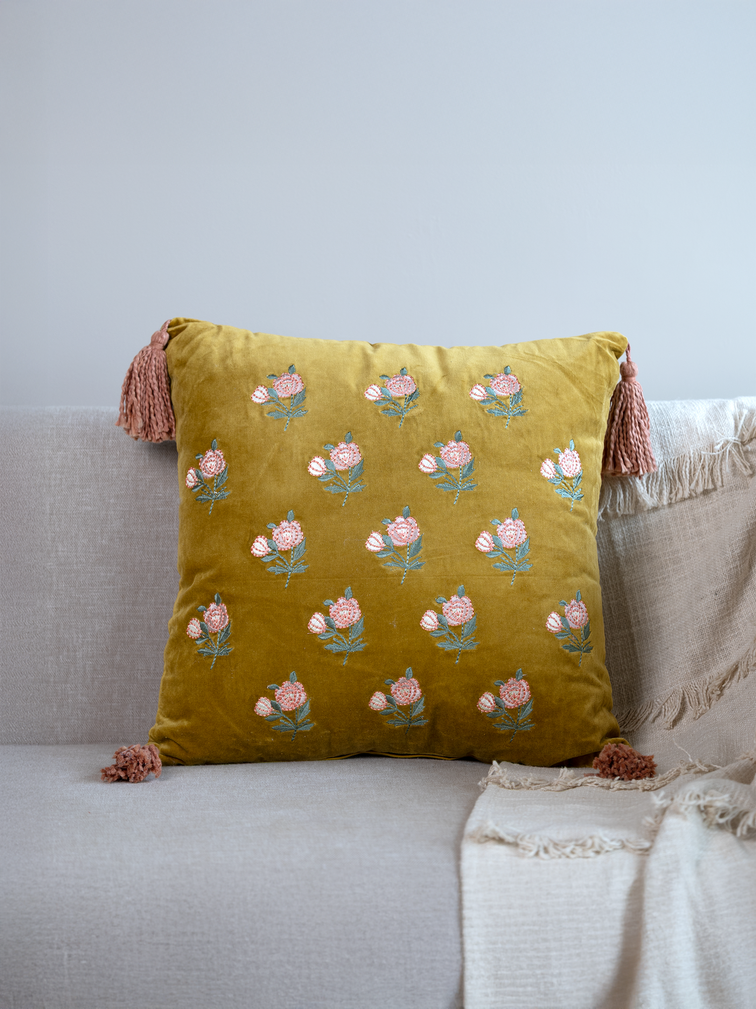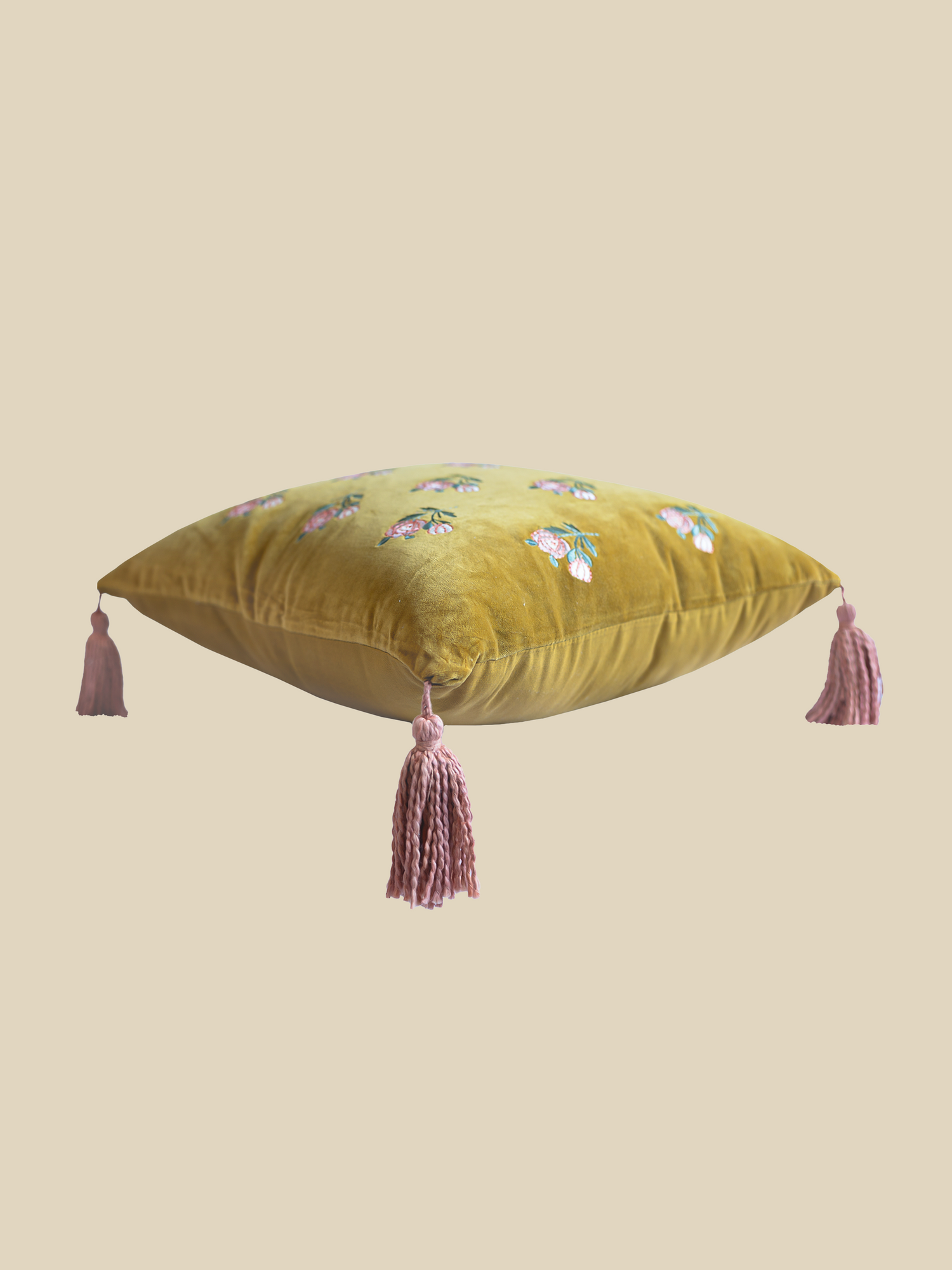 Cyrus Velvet Cushion - Yellow Ochre / Microfibre Filler is backordered and will ship as soon as it is back in stock.