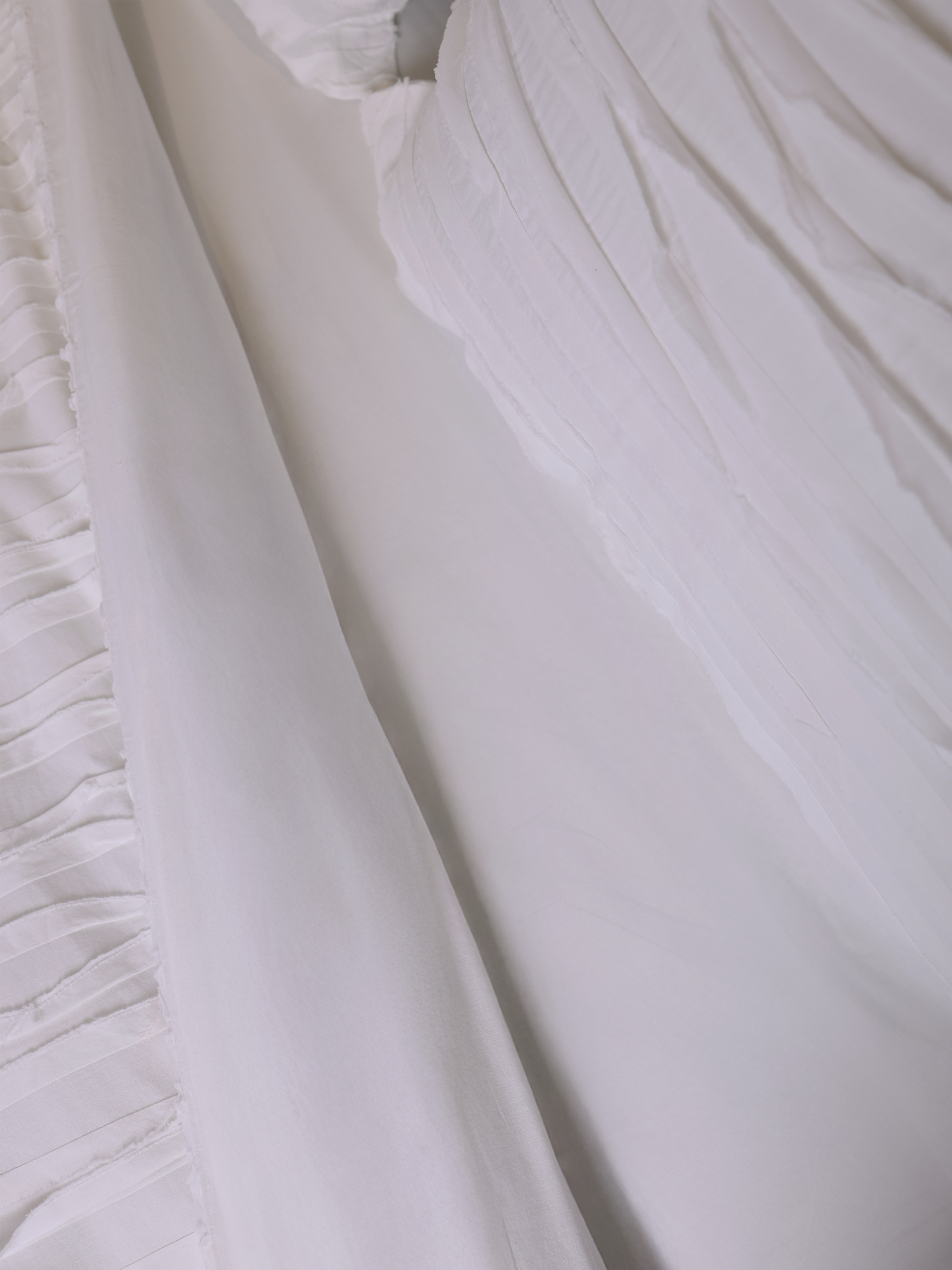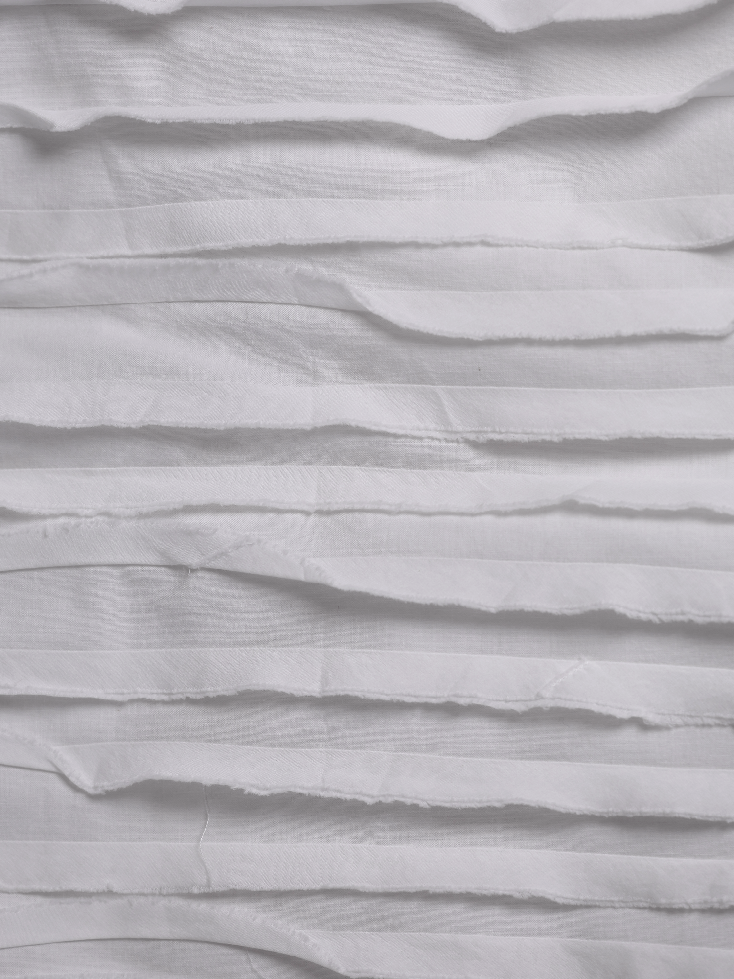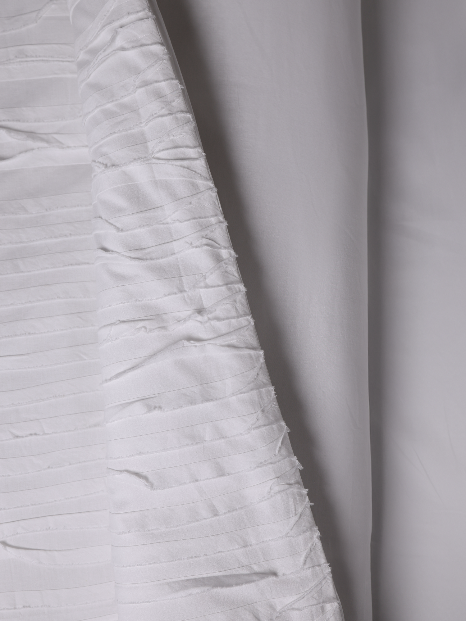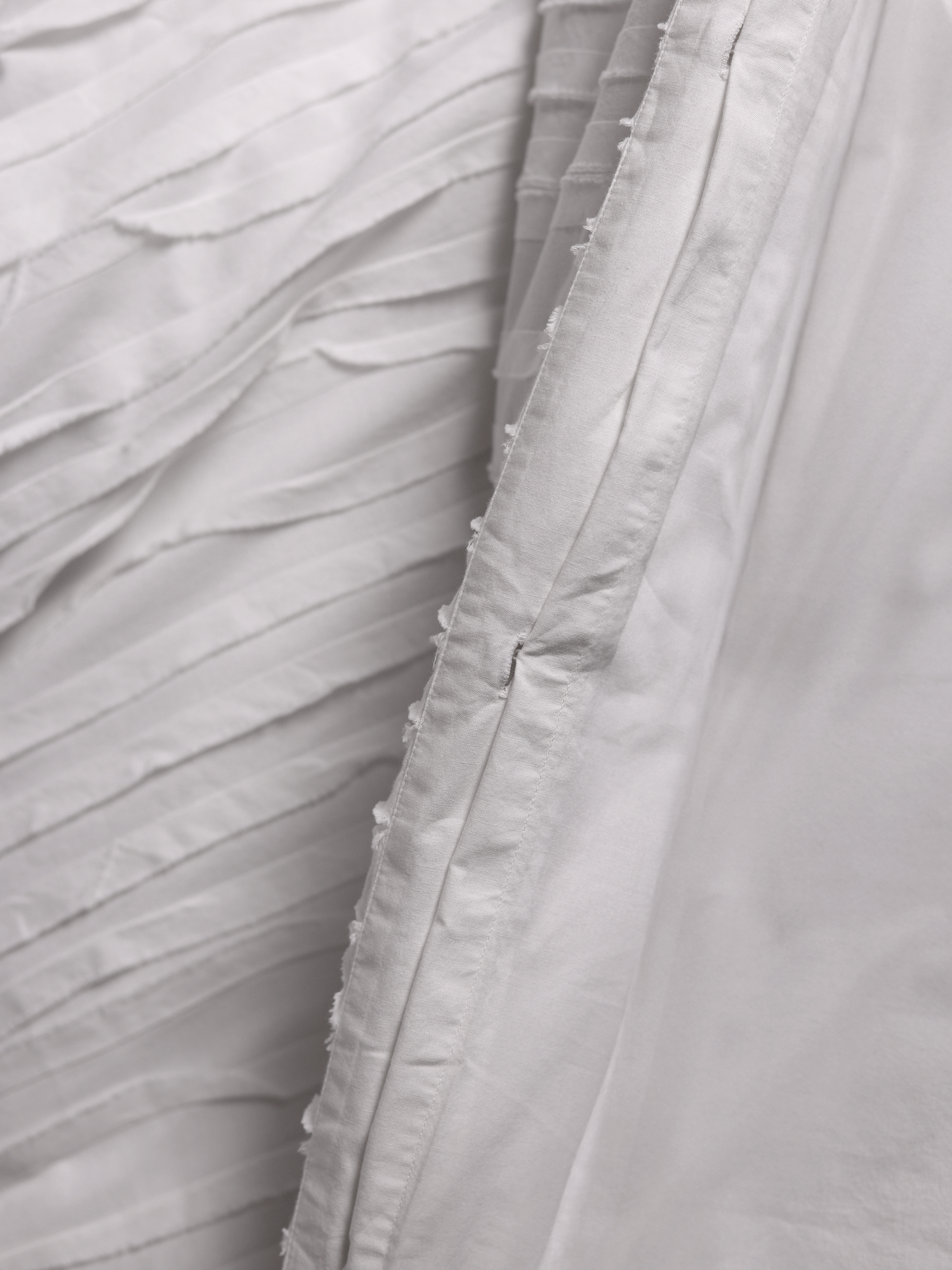 • Appliqué frayed edging for subtle texture and artisanal detail