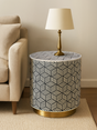 The Raya Side Table is craftsmanship made visible. Meticulously hand-inlaid by skilled artisans, each stripe of bone and wood is placed with precision, forming a graphic black-and-white pattern that feels bold, modern, and timeless all at once. Set atop a gold-toned base, Raya brings an edge of glamour while keeping its soul grounded in tradition.