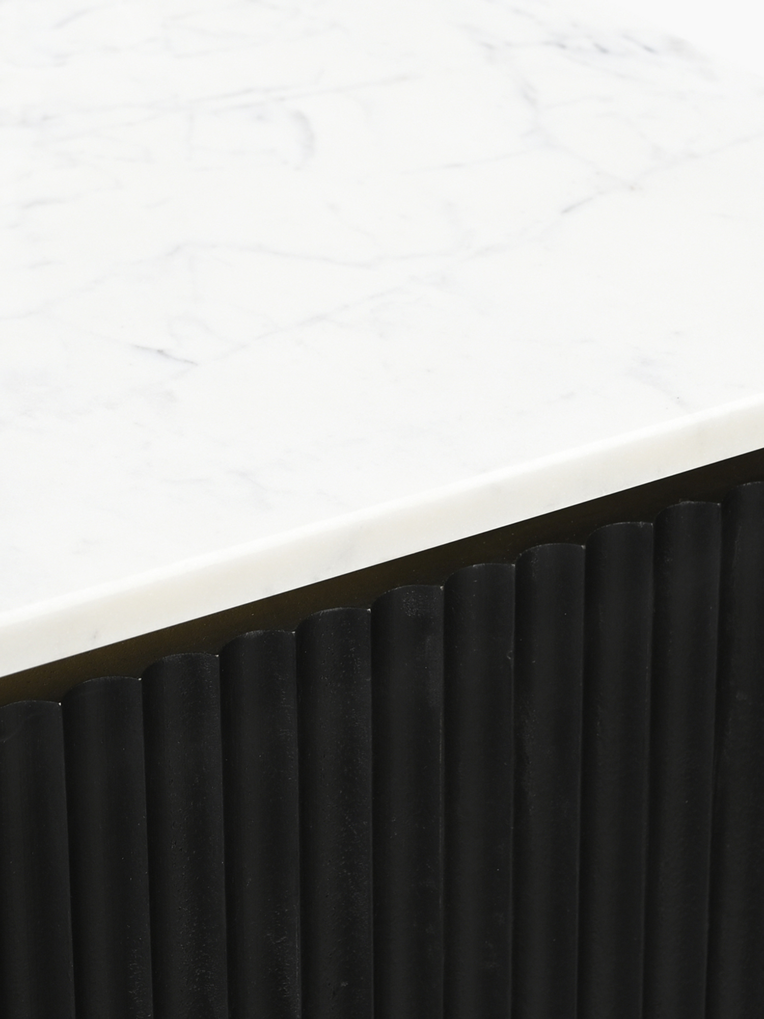 Simone Two-Door Marble Top Cabinet - Black is backordered and will ship as soon as it is back in stock.
