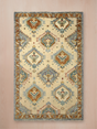 The Amber Oasis rug showcases traditional Persian motifs, meticulously hand-knotted to create a rich, artistic look. The beige and rust tones add warmth and depth, while the wool-cotton blend ensures a plush feel underfoot.