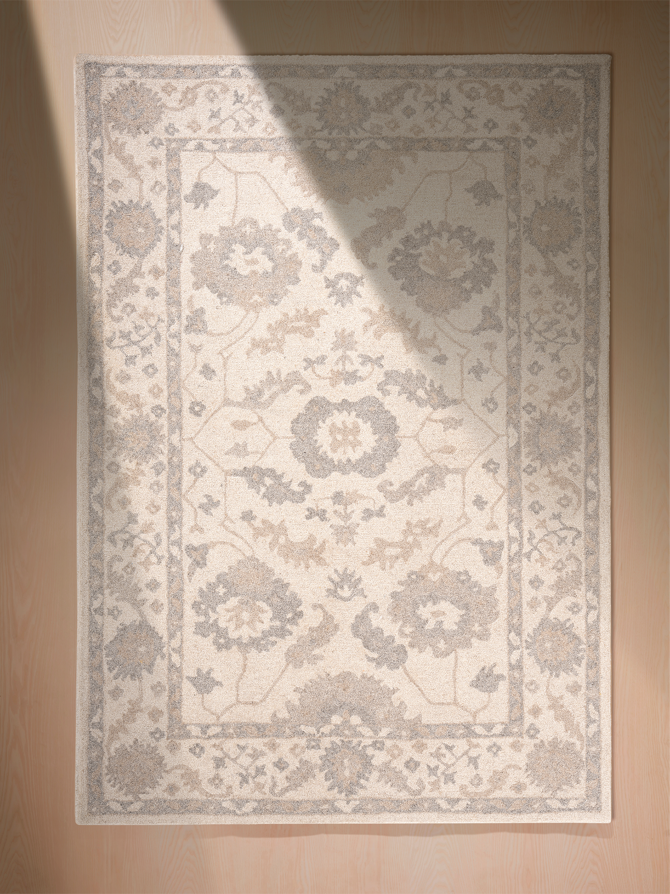 The Mia rug is a timeless ode to Persian artistry, featuring intricate botanical motifs in warm beige and brown hues. Its delicate floral patterns, inspired by traditional Persian carpets, bring a sense of heritage and craftsmanship to any space.