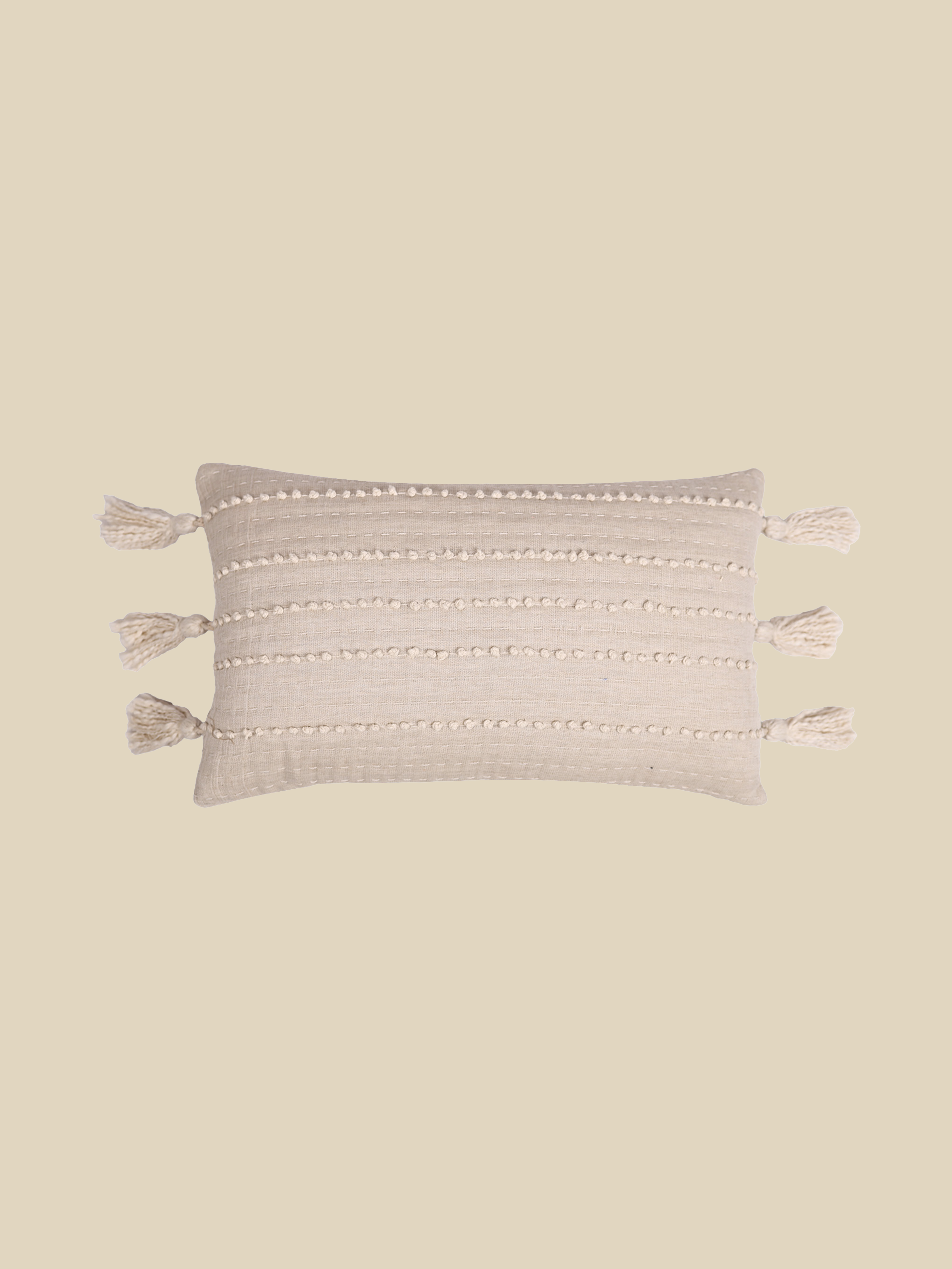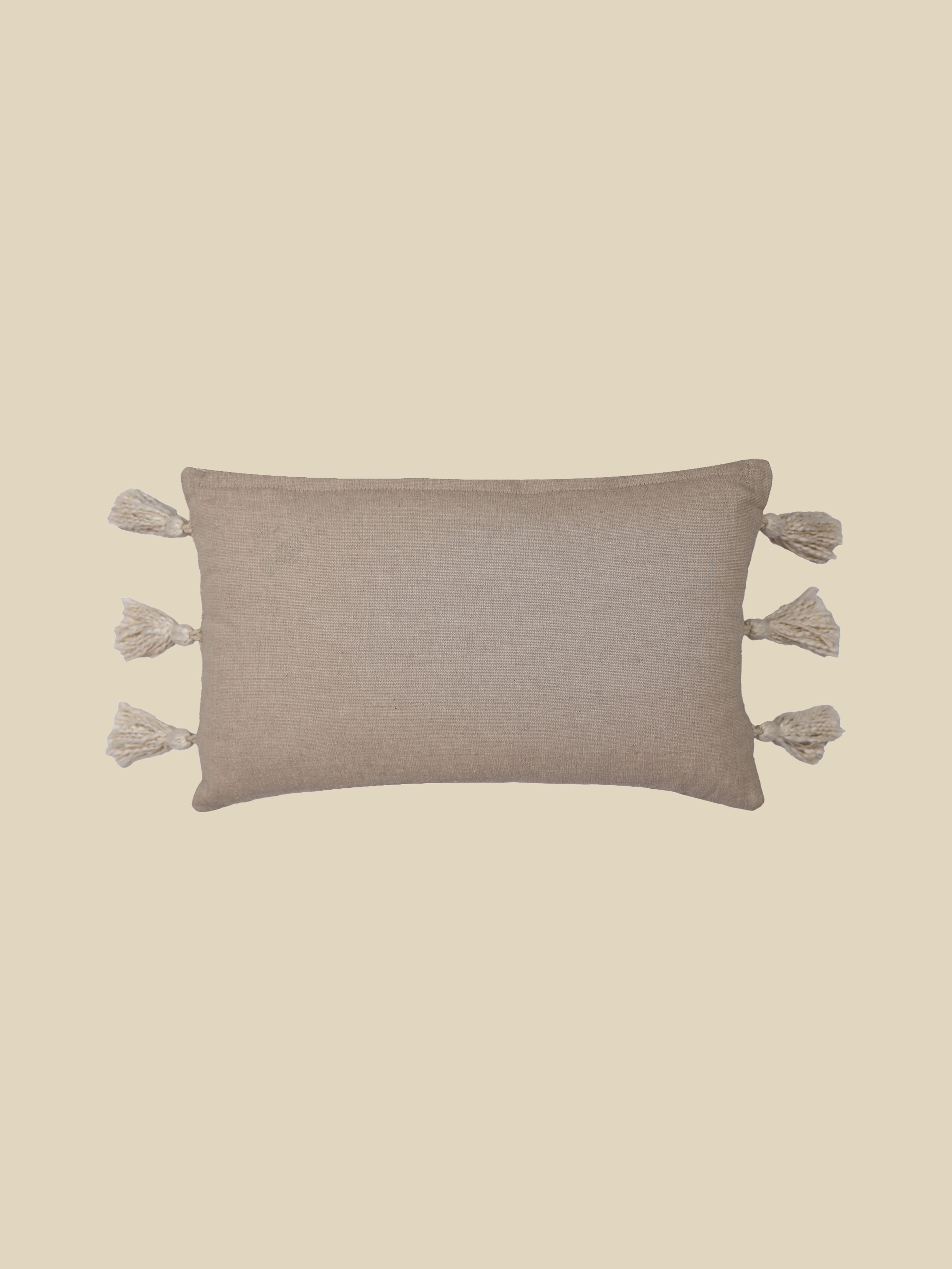 For everyday care, we recommend spot cleaning only and keeping your cushions out of direct sunlight to prevent fading. Hand-fluff and rotate them regularly to maintain their softness and shape. In case of tassels and fringe, if you notice light fraying, a gentle shake outdoors will help remove loose fibres and freshen the cushion.
