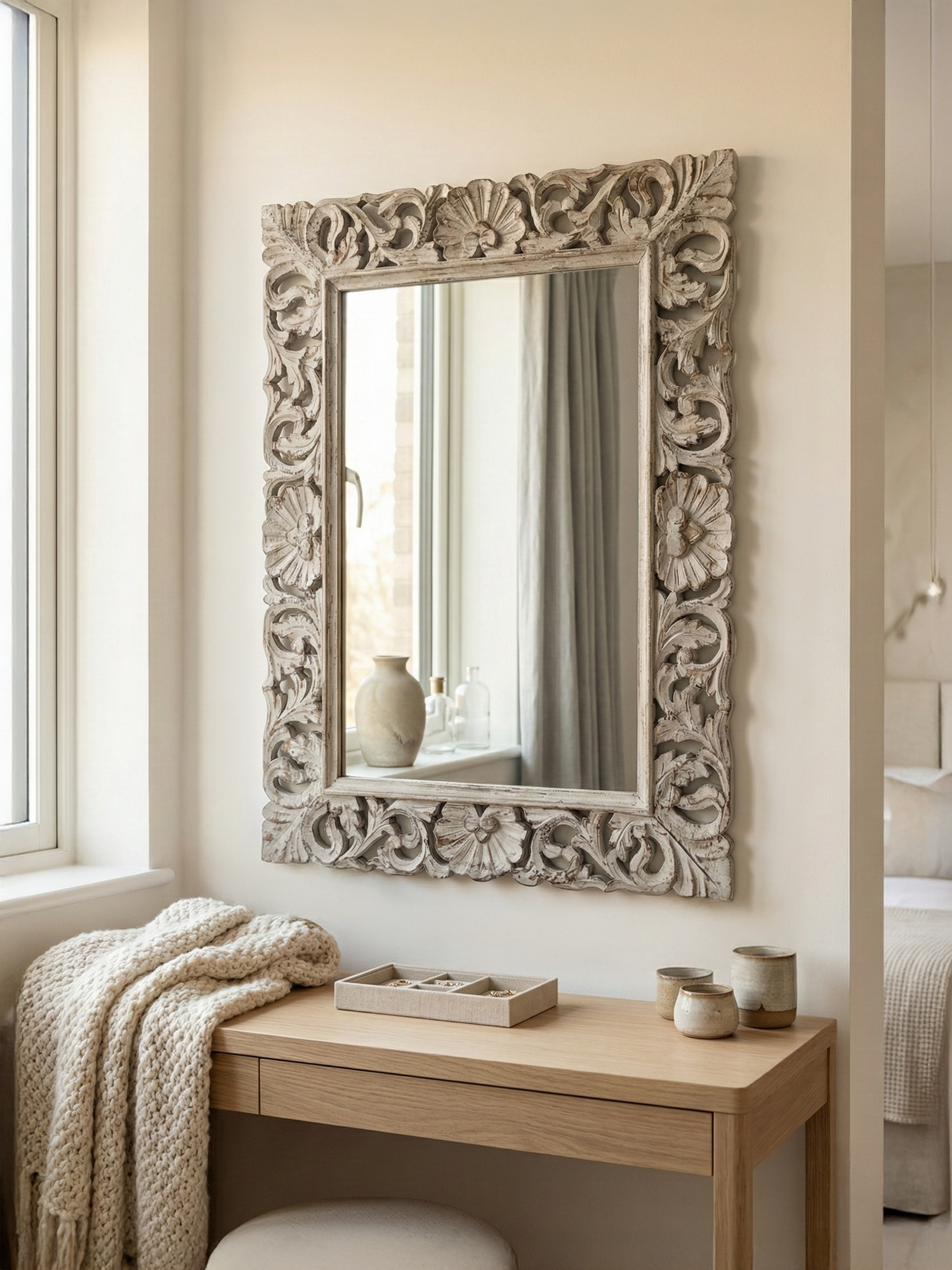 Many of our mirrors feature natural materials like wood, metal, or stone, so subtle variations in colour, grain, and texture are normal. Colours may also appear slightly different depending on lighting or screen settings. These natural details aren’t flaws. They’re the small, beautiful variations that make each FableRoom piece unique.
