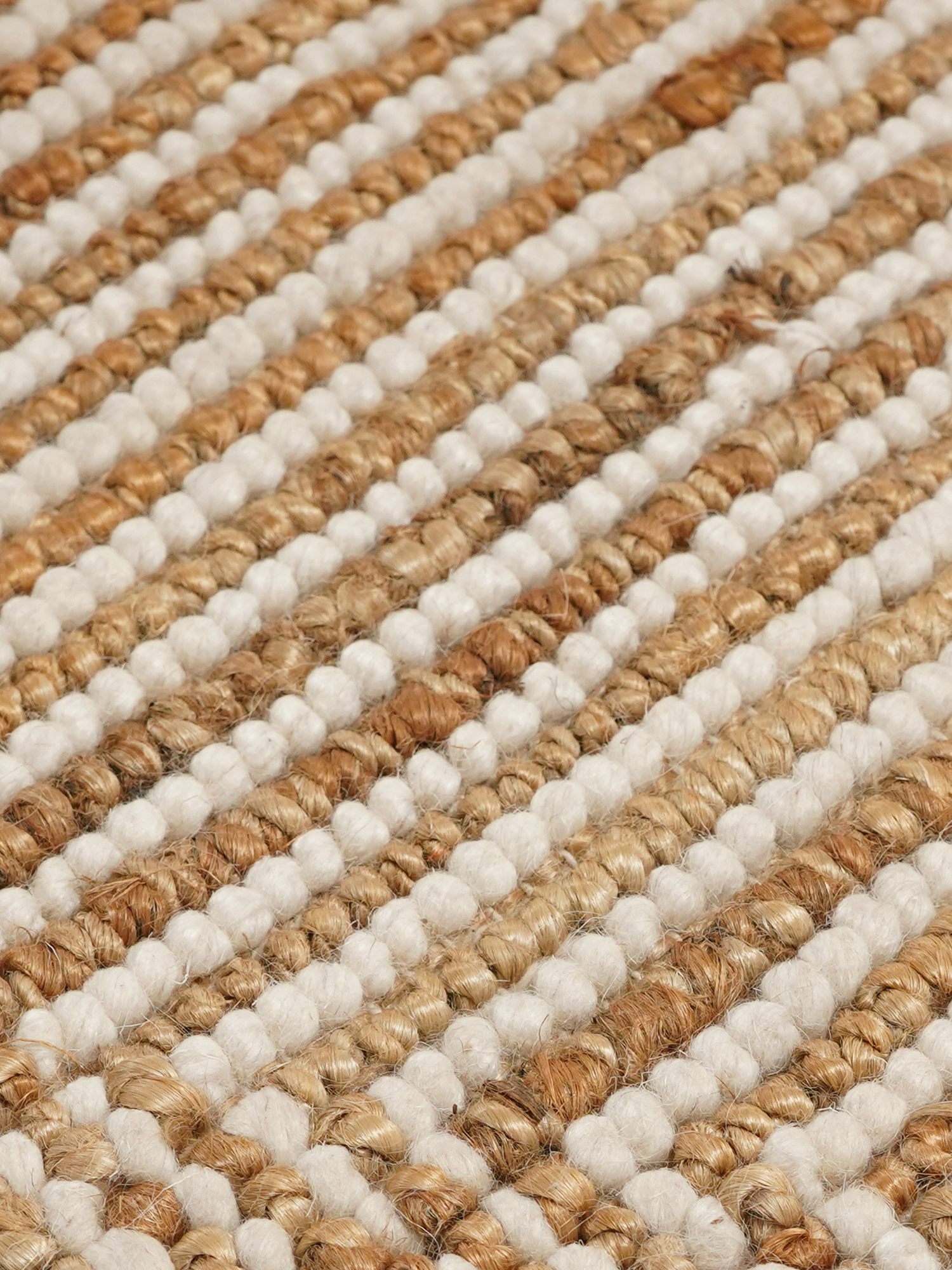 • Hand-woven from a blend of 55% jute, 35% wool, and 20% cotton