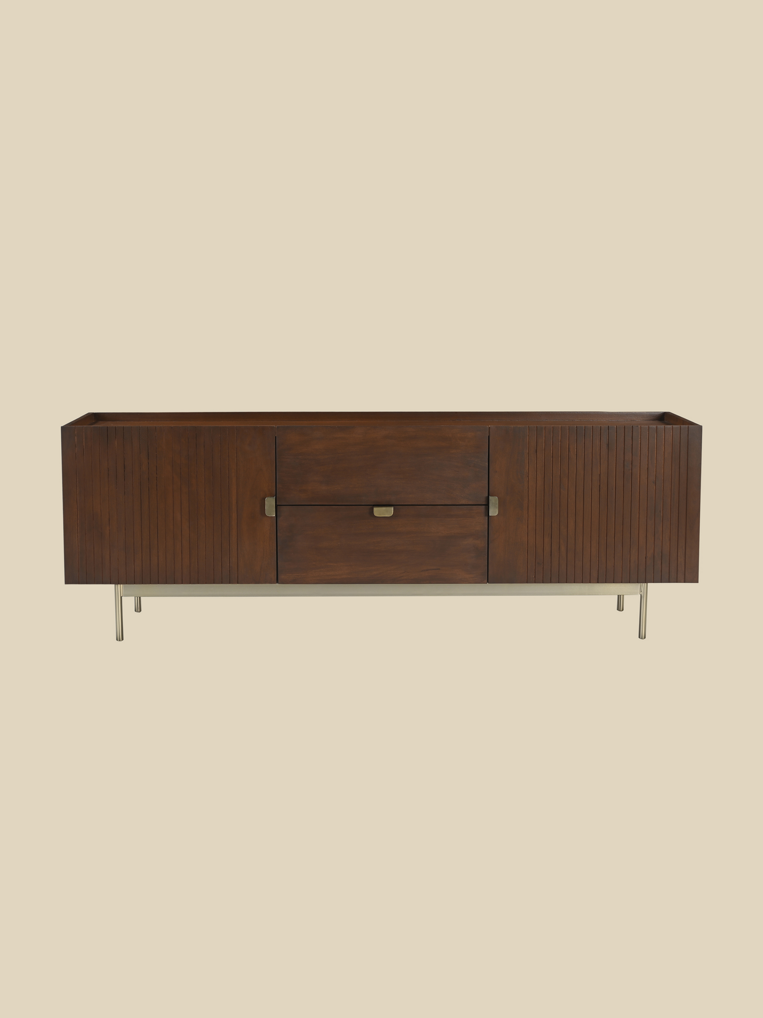 Jenna Mango Wood Media Unit - Dark Wood is backordered and will ship as soon as it is back in stock.