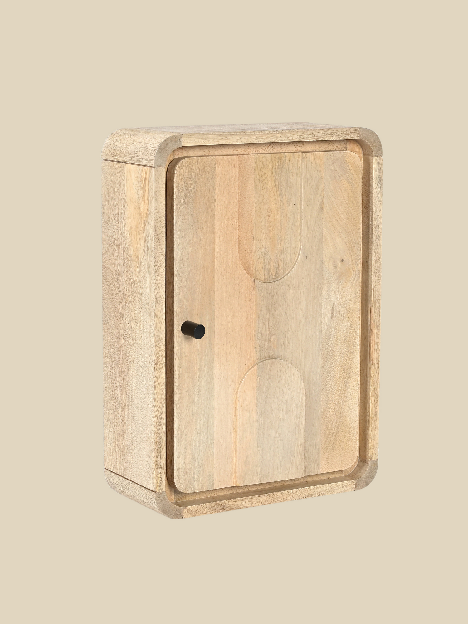 Luce Mango Wood One Door Cabinet - Natural is backordered and will ship as soon as it is back in stock.