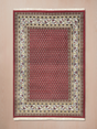 Deep red with patterned borders in traditional tones—timeless colours that bring depth, warmth, and elegance to interiors.