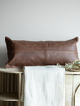 This rectangular cushion features a smooth leather front and cotton back, finished with a discreet zip closure for a sleek, tailored look.