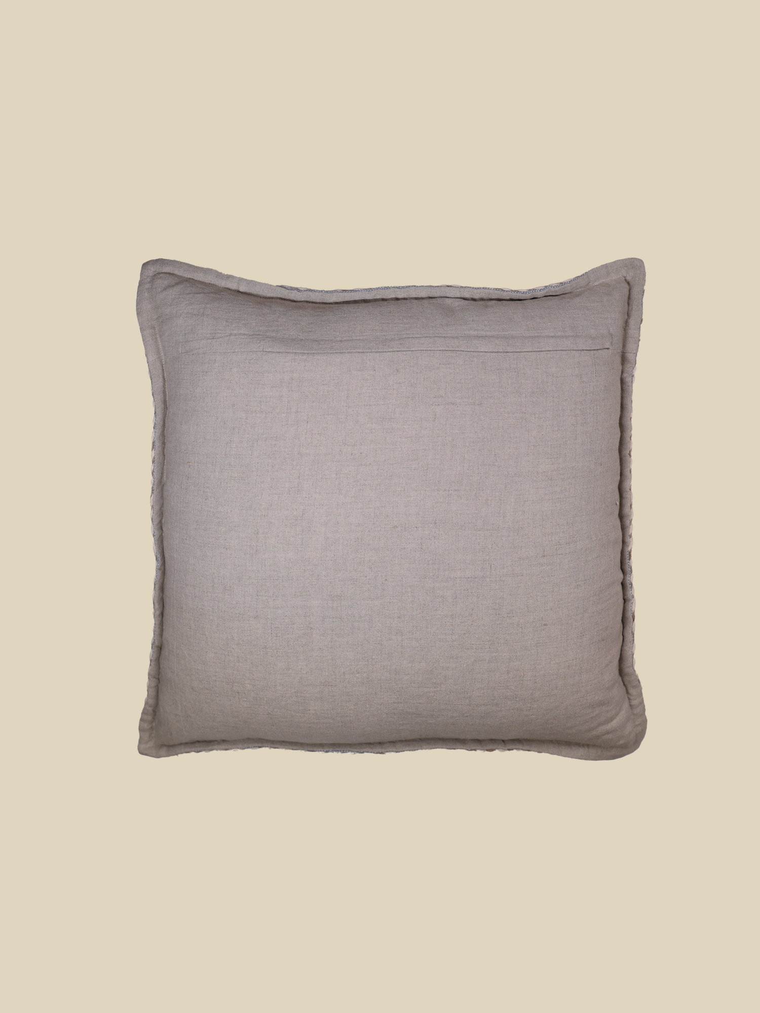 The Hamir cushion is all about easygoing charm with a hint of coastal cool. Its solid light blue shade feels like a breath of fresh air, while the 100% hand-woven linen fabric adds a touch of raw texture. Whether tossed on a sofa or propped up on a bed, it brings a laid-back, natural vibe to any space.