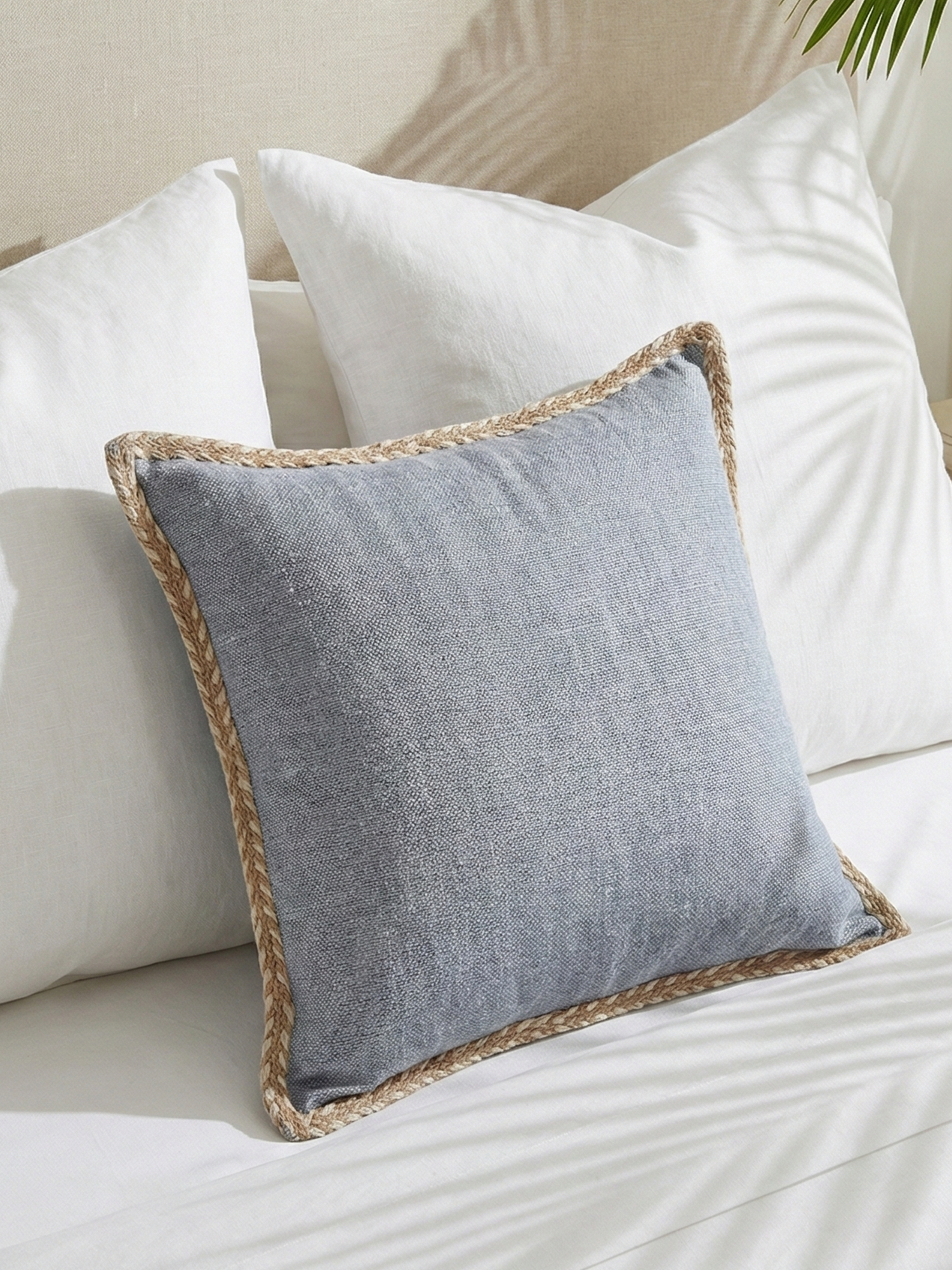 Designed for those who appreciate unfussy, organic beauty, the Hamir cushion delivers understated style with a coastal-inspired edge. The linen fabric’s slightly crinkled texture gives it a relaxed, lived-in feel, making it perfect for spaces that embrace natural elements. Whether layered with crisp whites and neutral tones or mixed with deeper blues for contrast, it’s a versatile staple that fits into any setting.