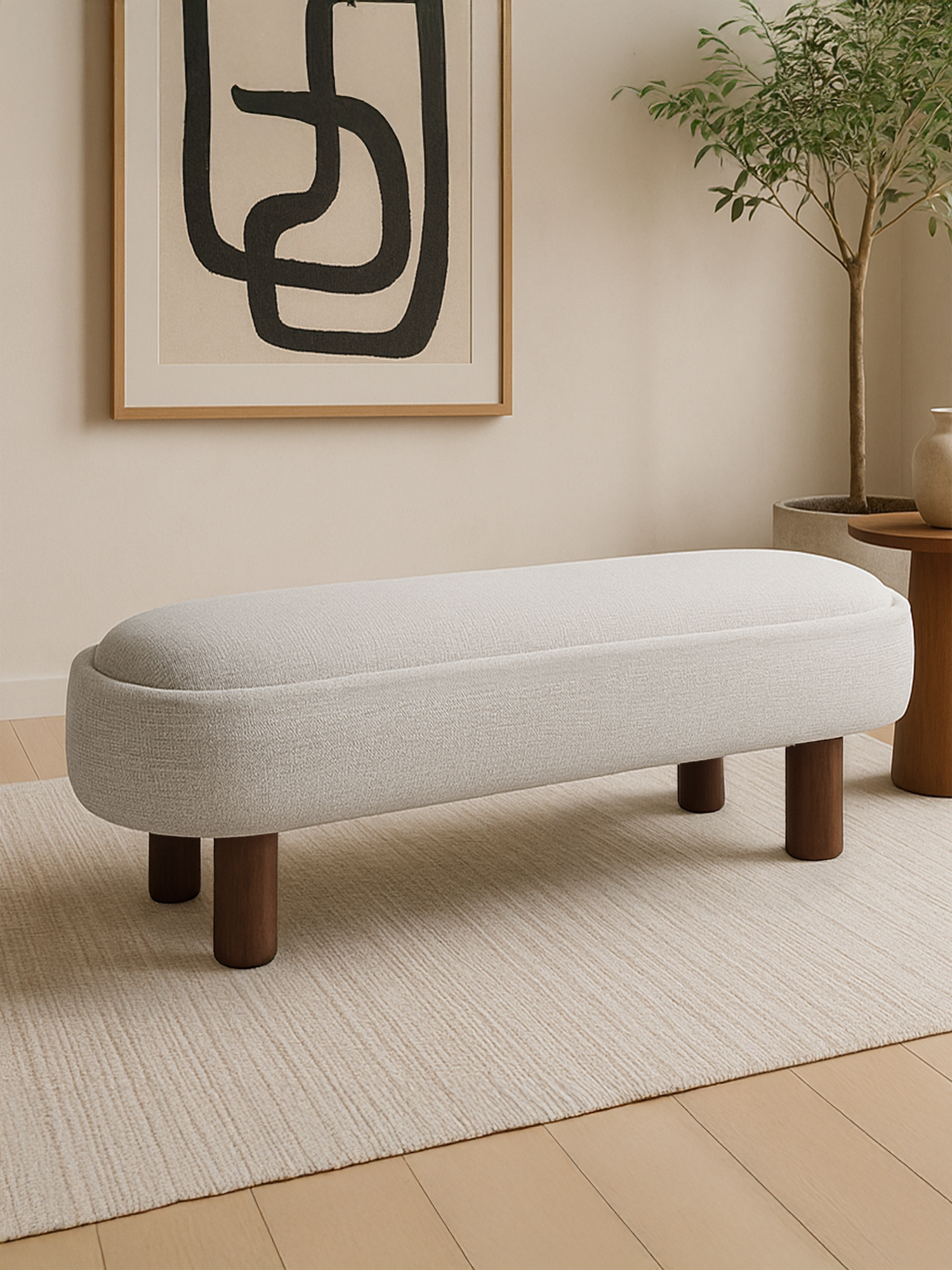The Yael Ottoman embodies understated modern luxury. Its soft ivory upholstery and clean silhouette create a sense of calm, while the warm wooden base adds grounding contrast. Whether used as extra seating, a footrest, or a sculptural accent, Yael brings effortless elegance to any corner. Designed for those who appreciate balance, texture, and timeless simplicity.