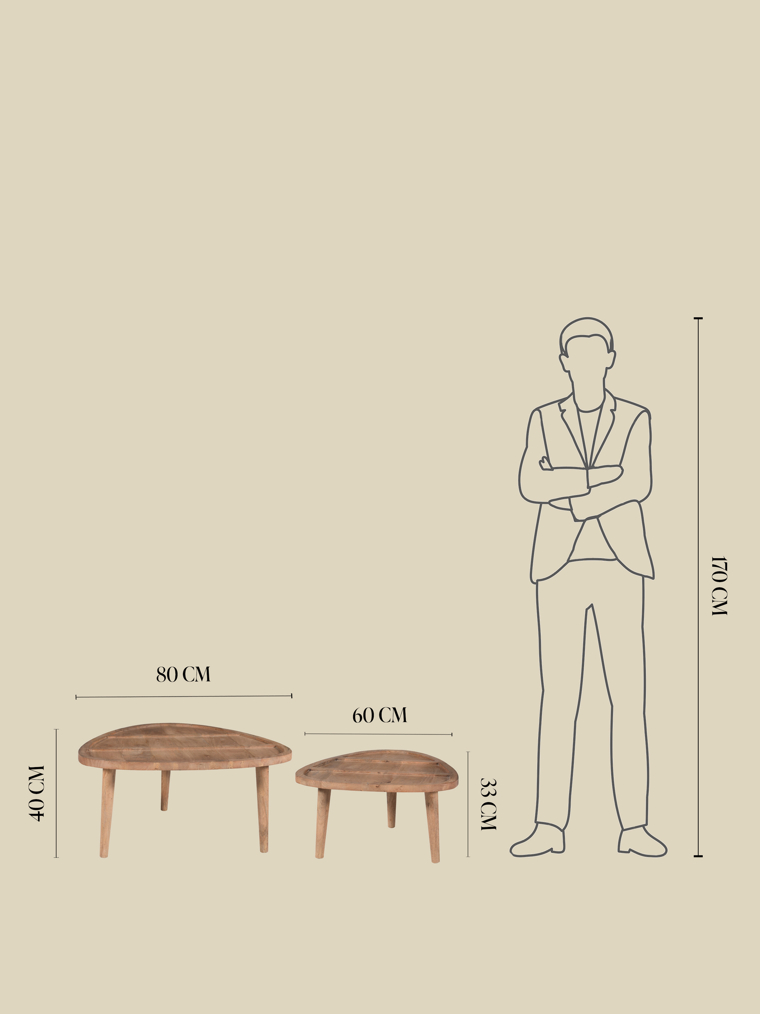 The Cairo Coffee Table Set proves that minimalism doesn't have to be predictable. With clean triangular mango wood tops and tapered legs, these two nesting tables offer form and function in equal measure. Available in two versatile finishes—a sleek matte black for a bold, modern edge, or a warm natural wood for a more organic, earthy feel—Cairo adapts effortlessly to your space and style.
