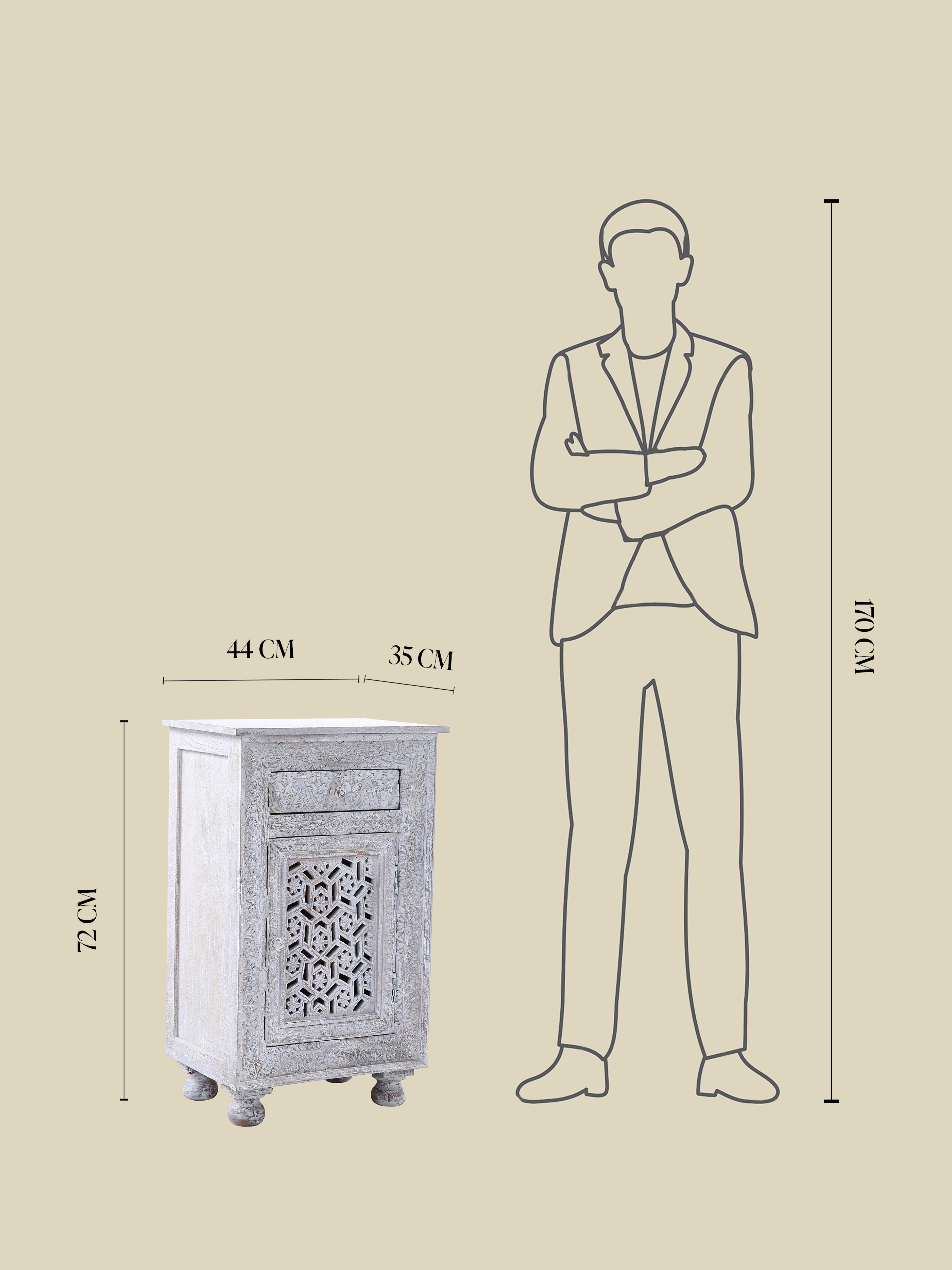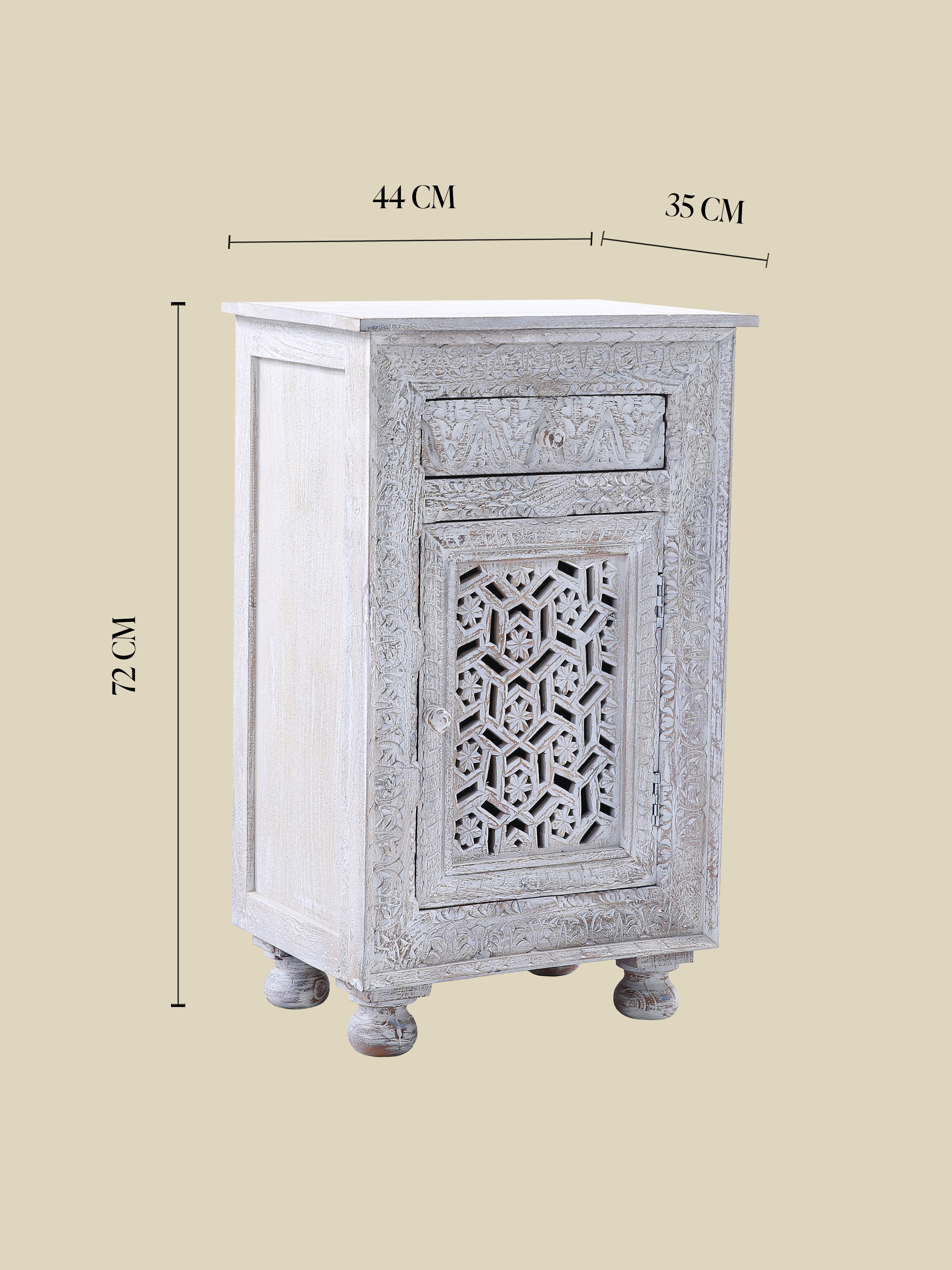 The Grace Side Table is where craftsmanship and character meet. Crafted from premium mango wood with a soft, distressed grey finish, Grace’s floral-carved front commands attention without overpowering your space. The intricate design adds texture and movement, while the spacious drawer provides practical storage for everyday essentials.