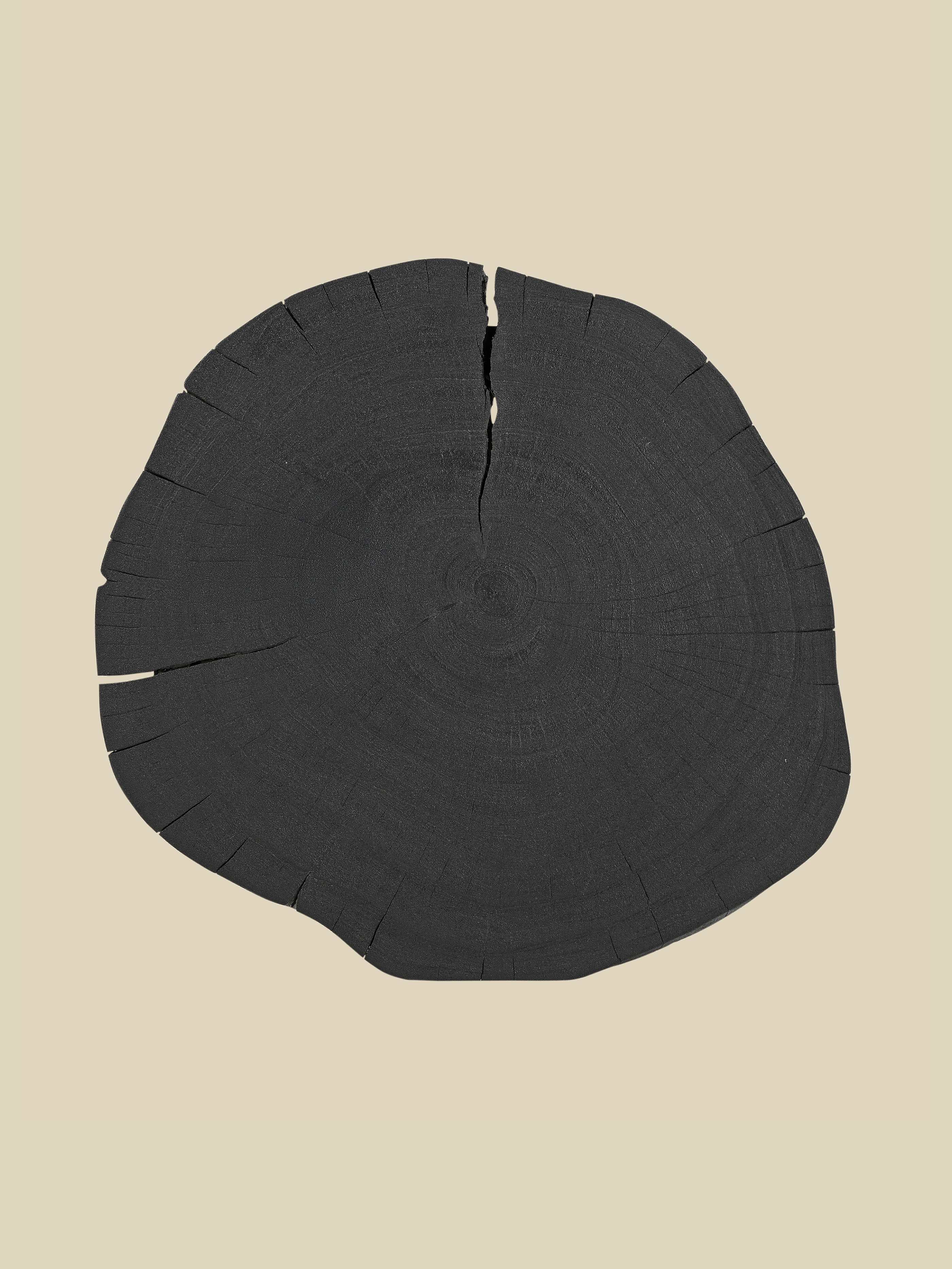 • Solid acacia wood top with a bold black finish for a sleek, organic look