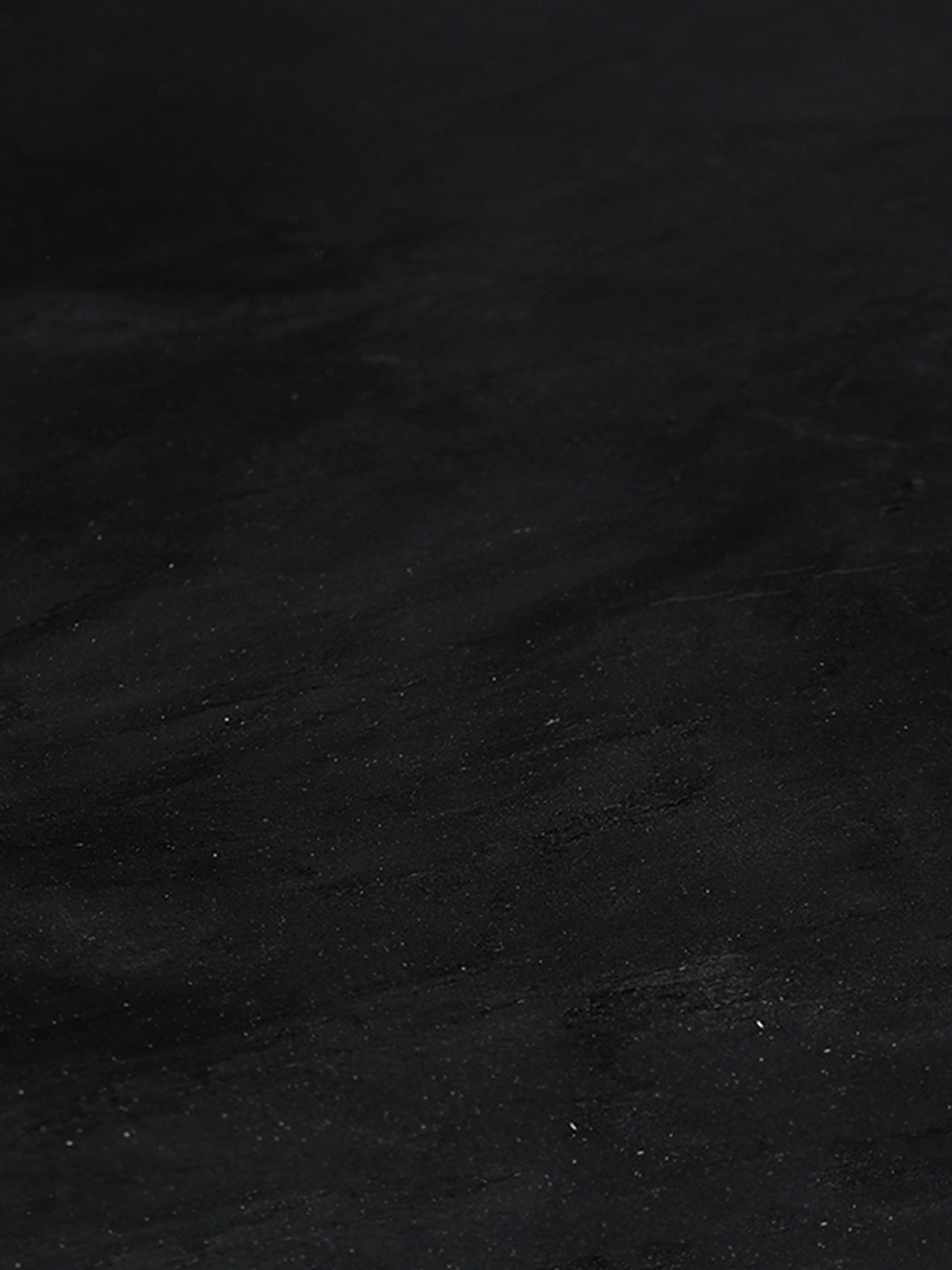 • Striking round top in rich black marble with natural veining