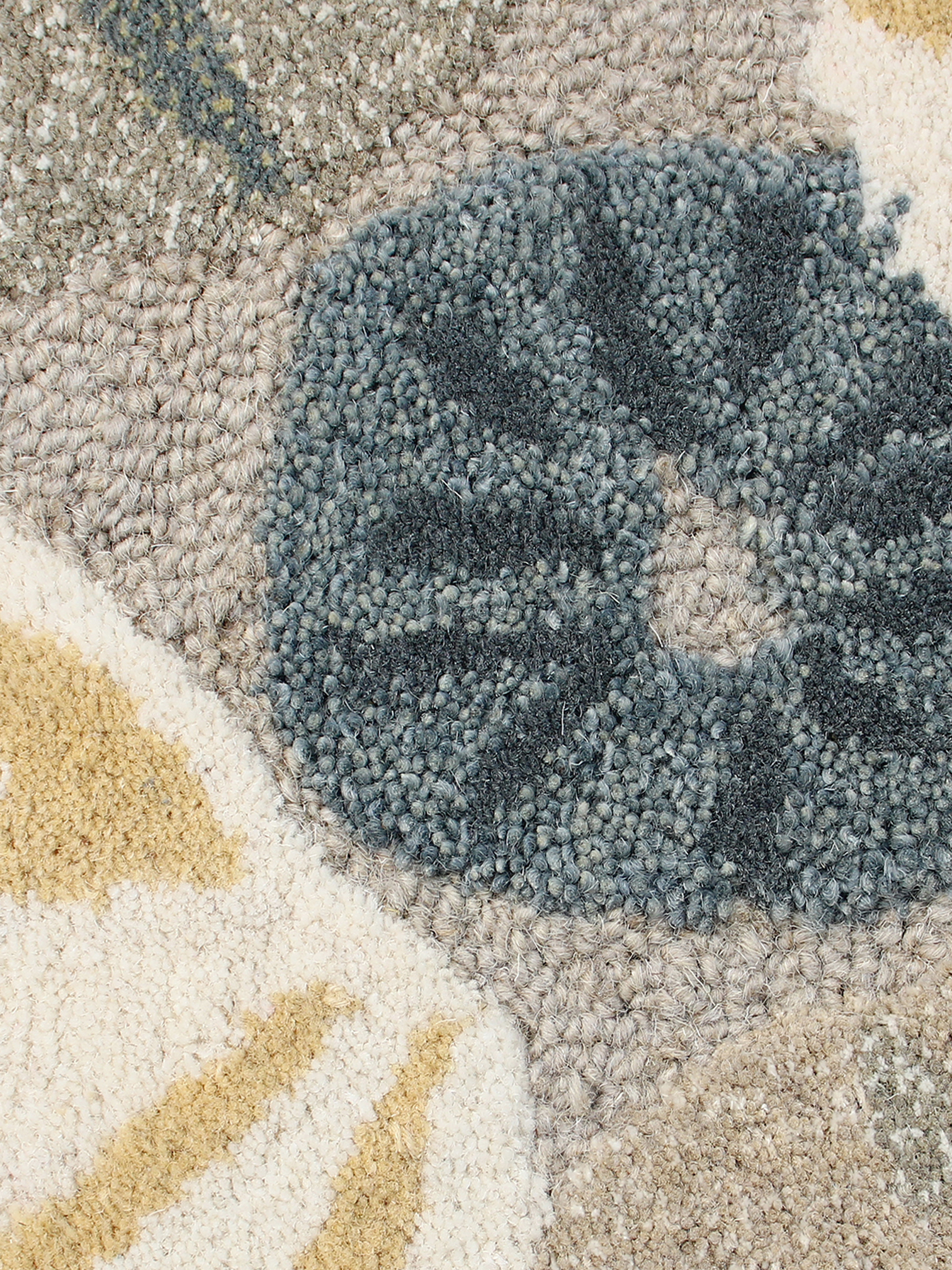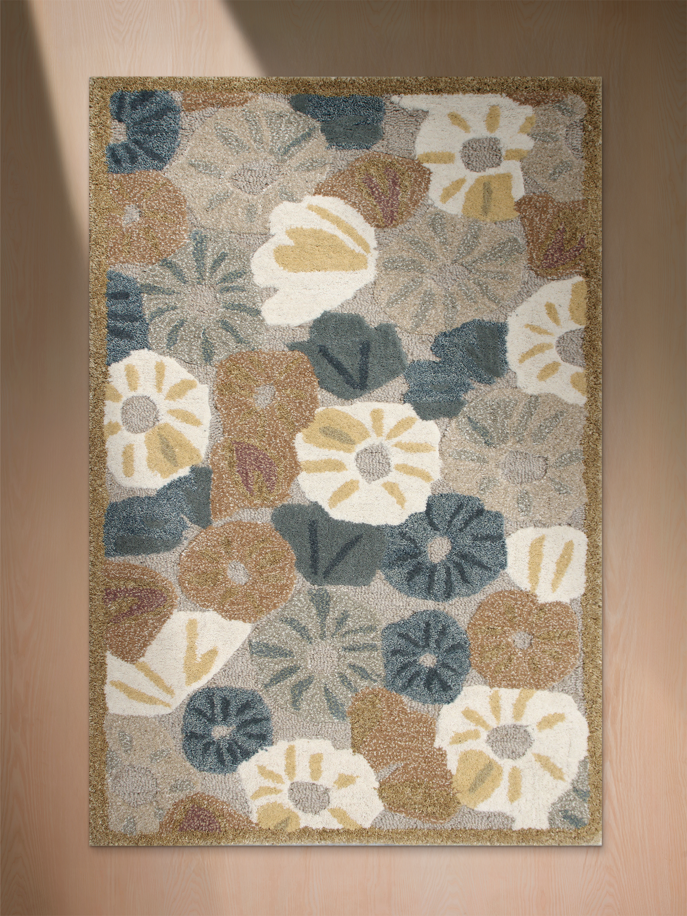 To keep your rug looking its best, shake or lightly beat it to remove dust, and rotate it regularly for even wear. Blot spills immediately with a clean, white cloth, keeping the rug as dry as possible. For tougher stains, professional cleaning is recommended. To preserve its colour and texture, avoid placing it in direct, prolonged sunlight. Do not pull any loose yarns. If needed, simply trim them with scissors so they sit neatly at the same height as the rest of the pile.