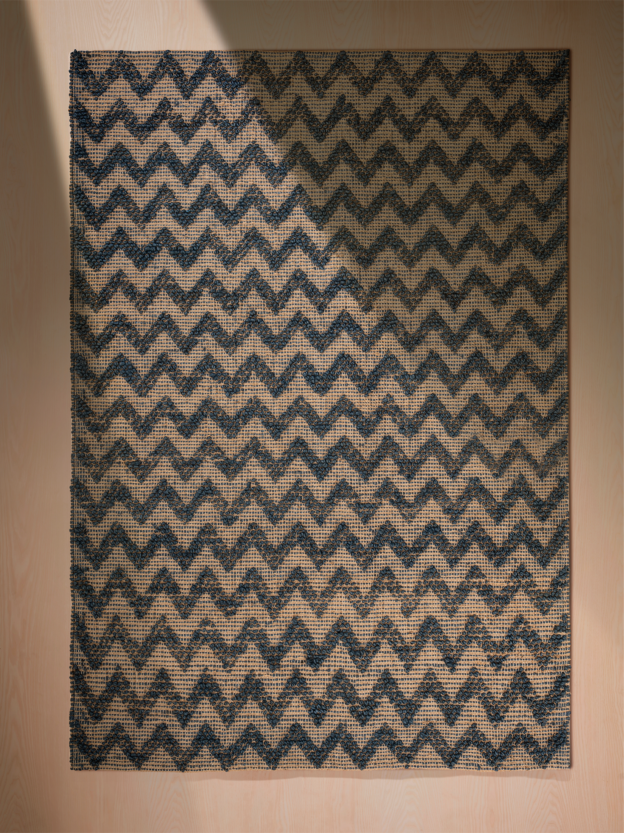 The Ariel rug, with its blue and beige hues and herringbone pattern, brings an instant coastal charm to any space. Crafted from a blend of jute and cotton, it offers a perfect mix of durability and softness, making it a cosy yet stylish addition to contemporary and eclectic interiors.