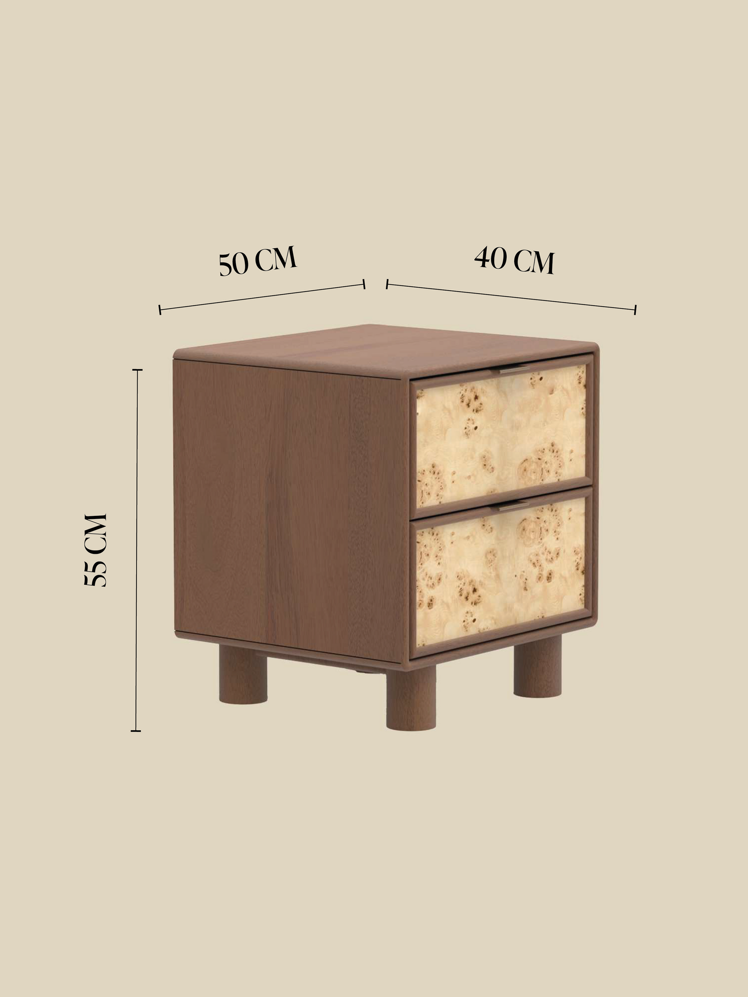 Aurea Burl Two Drawer Bedside Table - Walnut