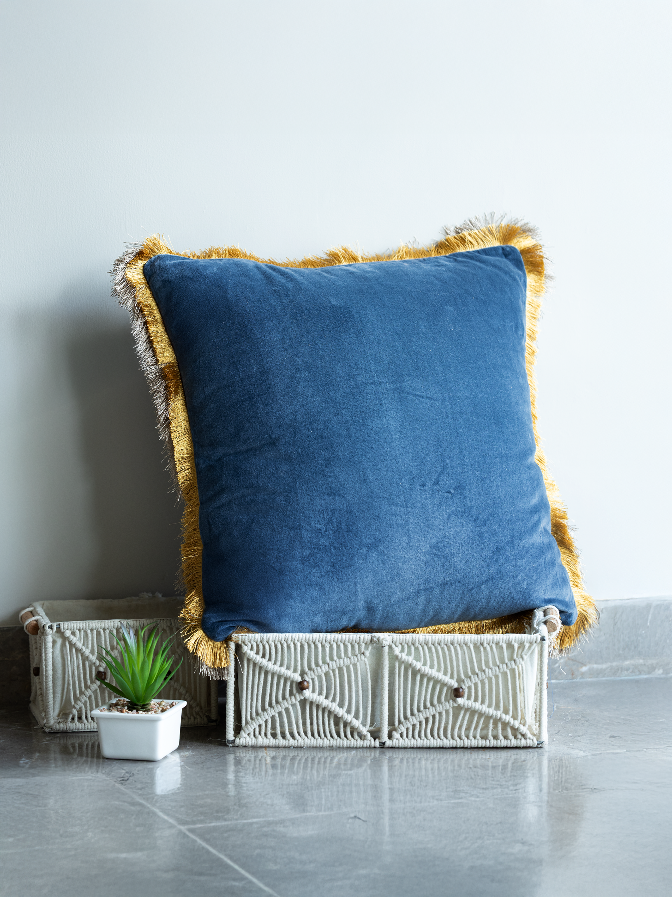 For everyday care, we recommend spot cleaning only and keeping your cushions out of direct sunlight to prevent fading. Hand-fluff and rotate them regularly to maintain their softness and shape. In case of tassels and fringe, if you notice light fraying, a gentle shake outdoors will help remove loose fibres and freshen the cushion.