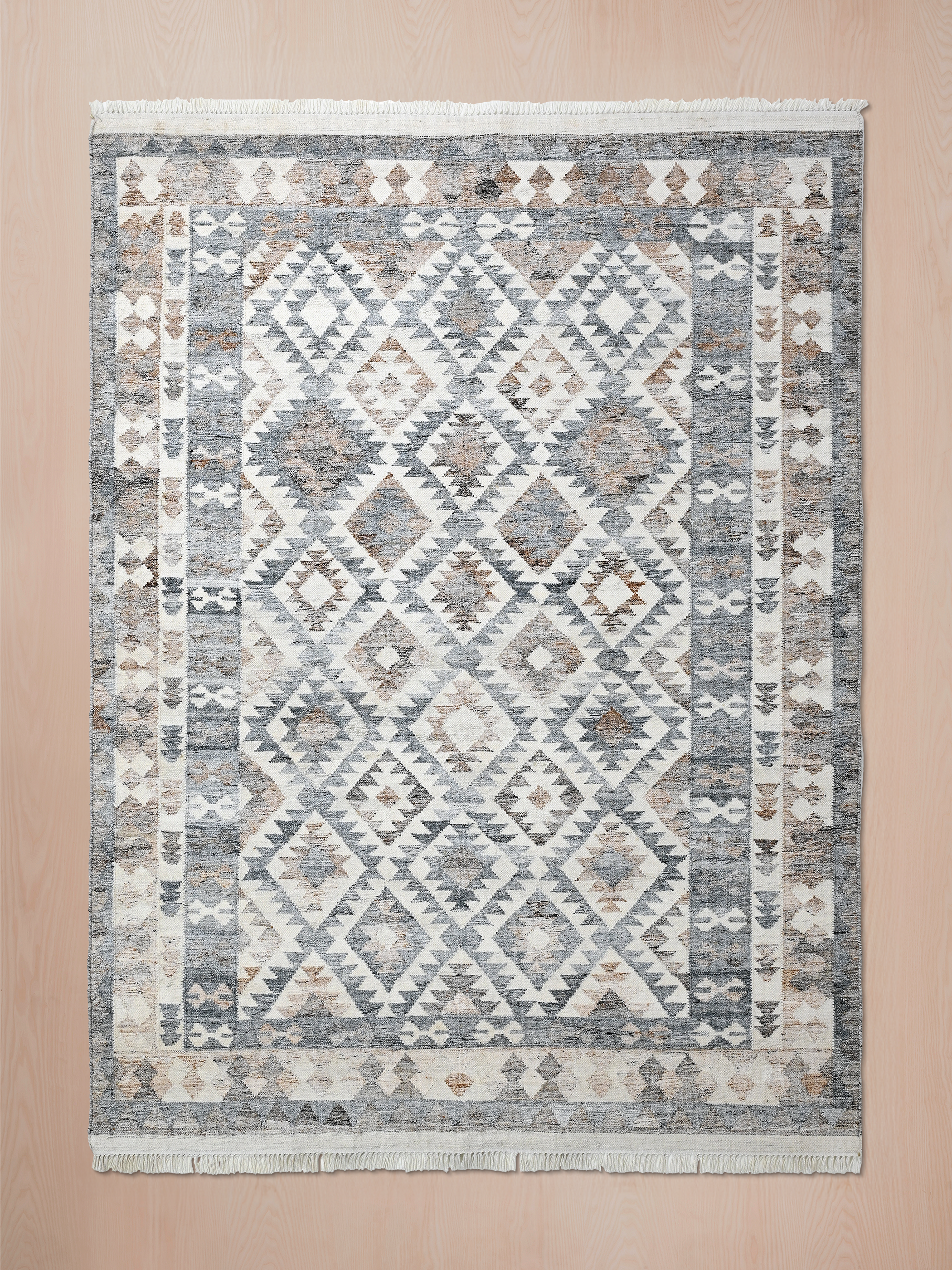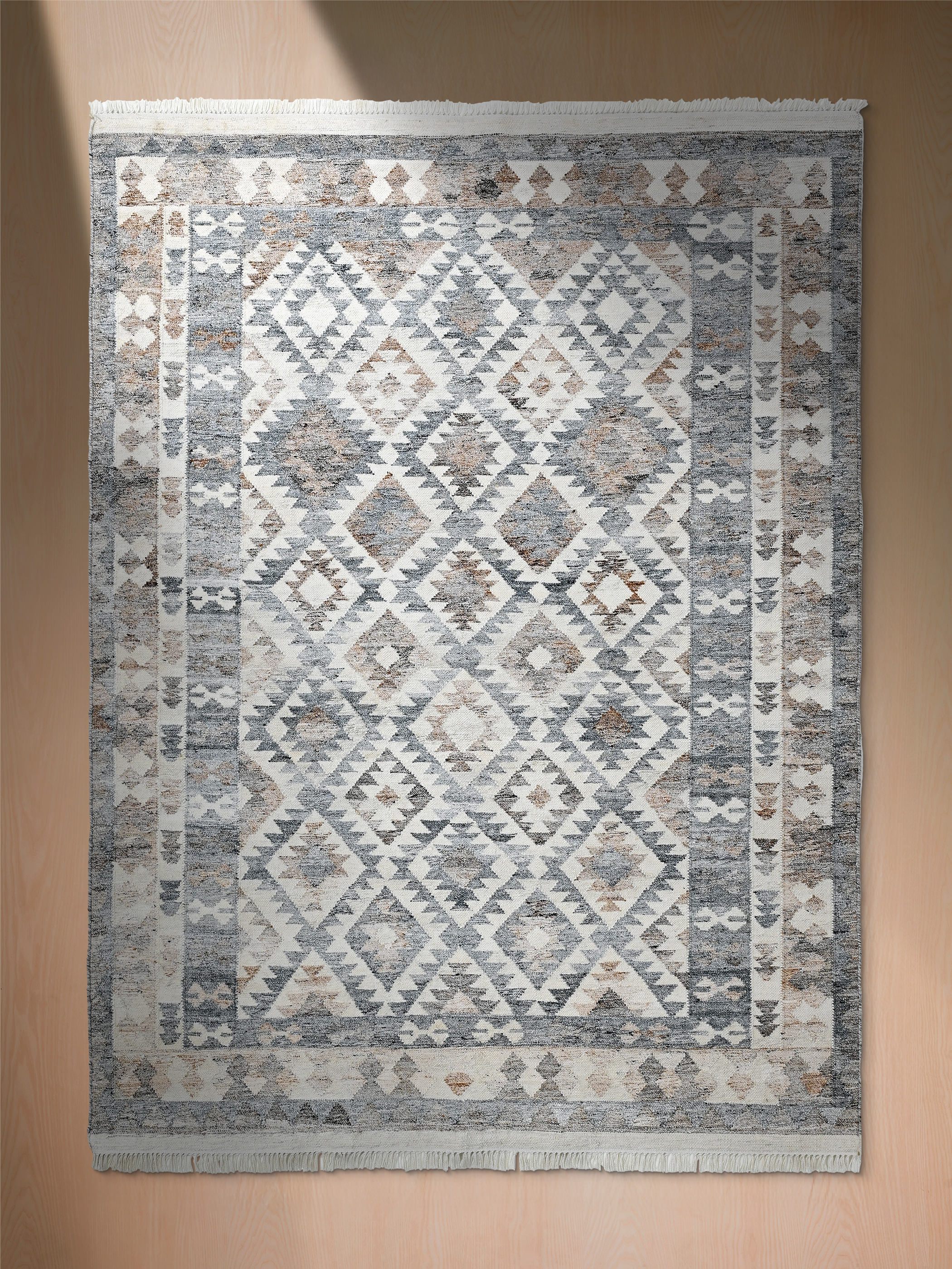 • Hand-woven rug with intricate geometric patterns
