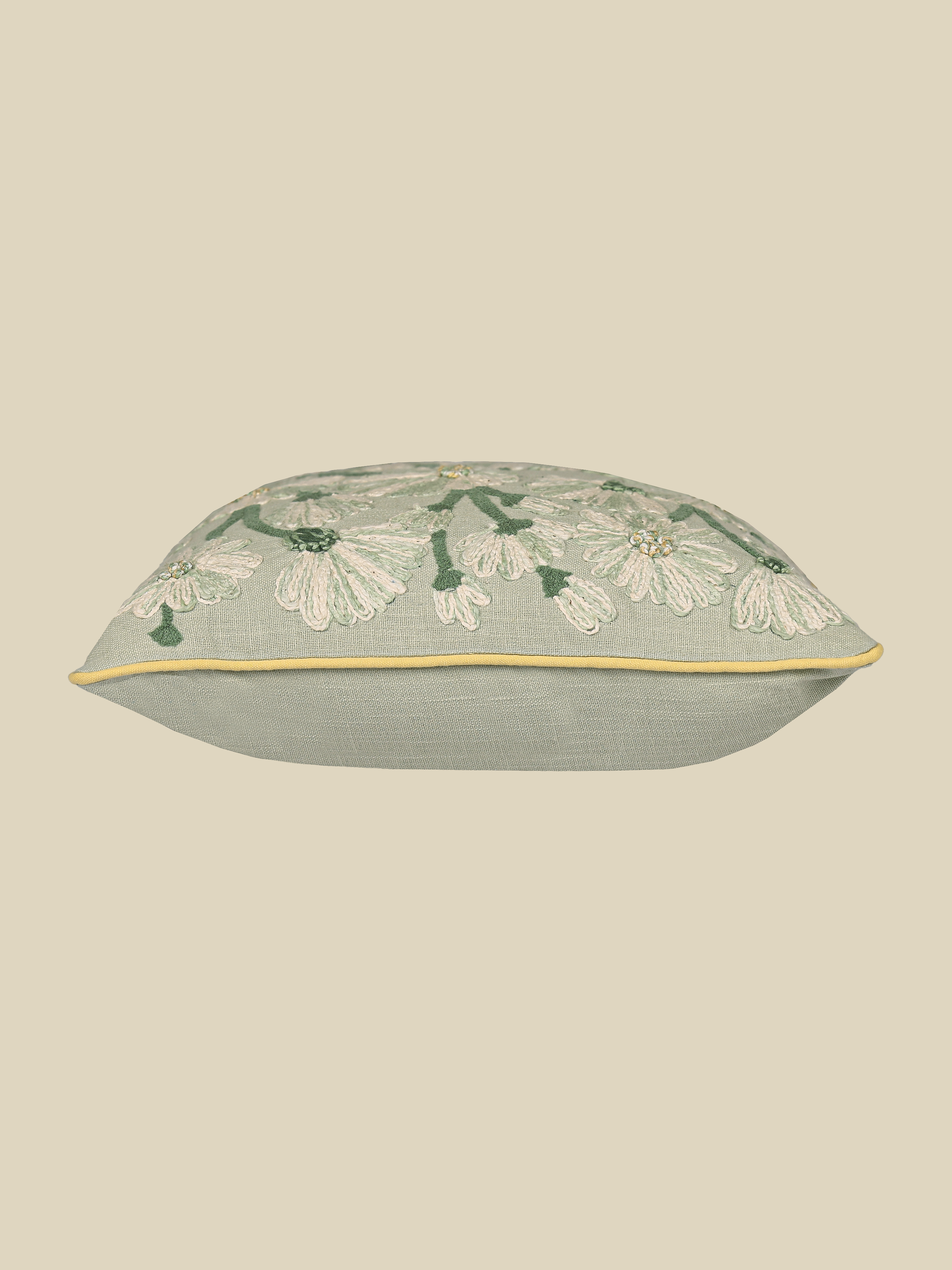 The Flora Bloom Cushion is a graceful blend of craft and comfort. Made from 100% cotton and embroidered with an intricate floral design, it adds a soft, refined texture to your setting. The sage green tone is calming, making it just as suited to a cosy reading nook as to a styled living room.
