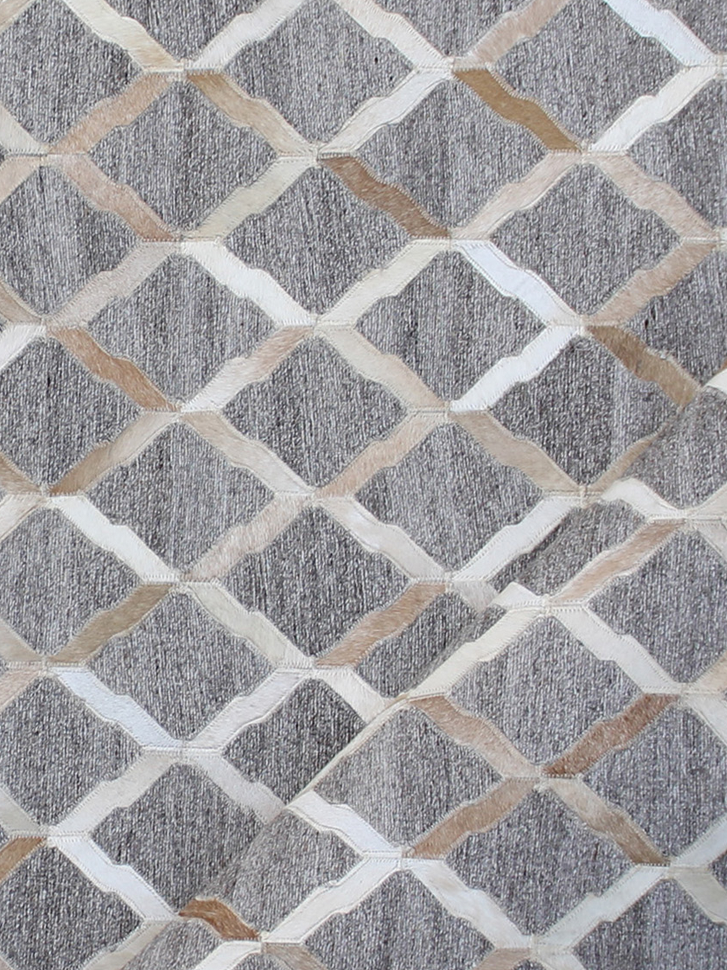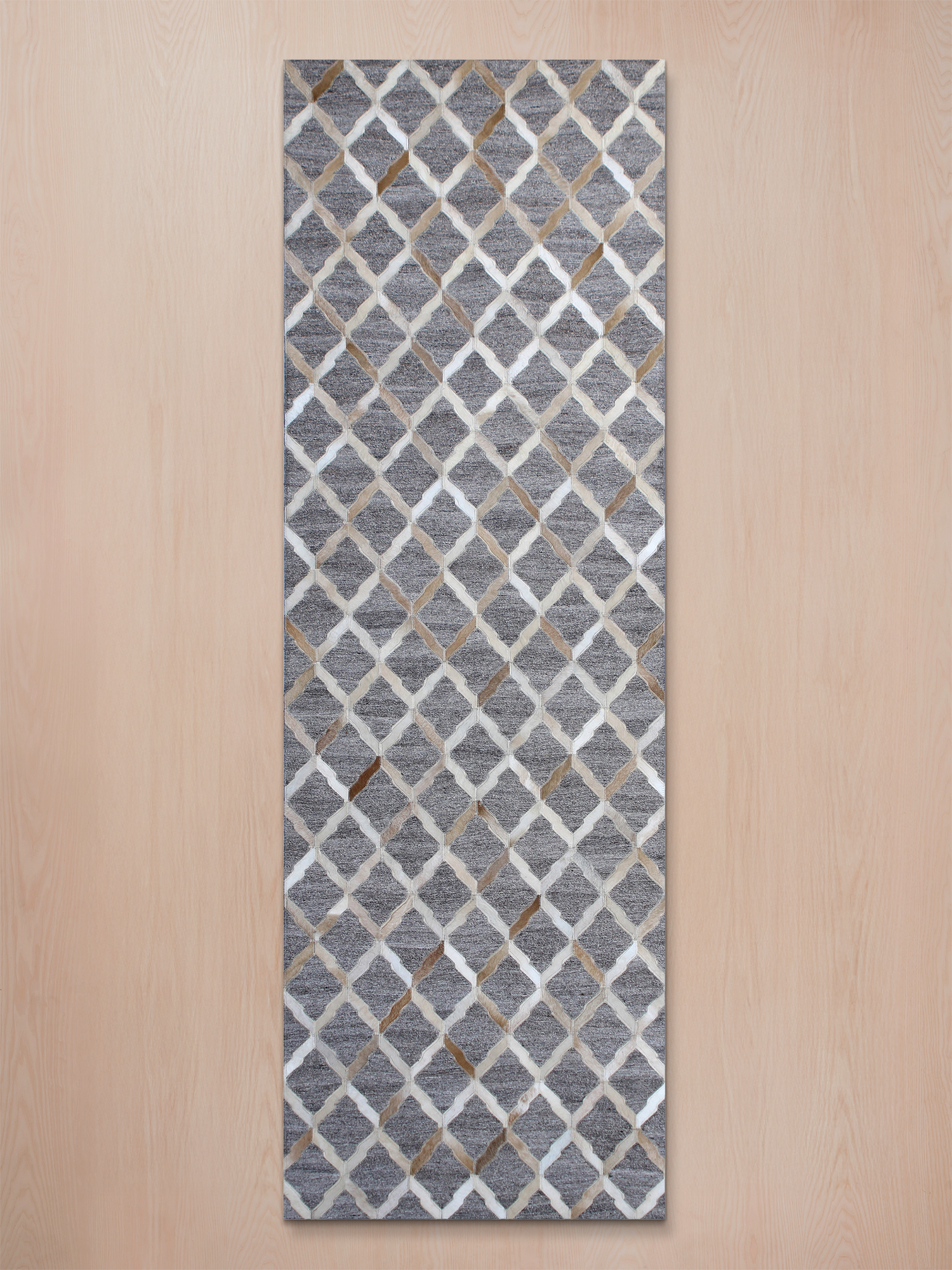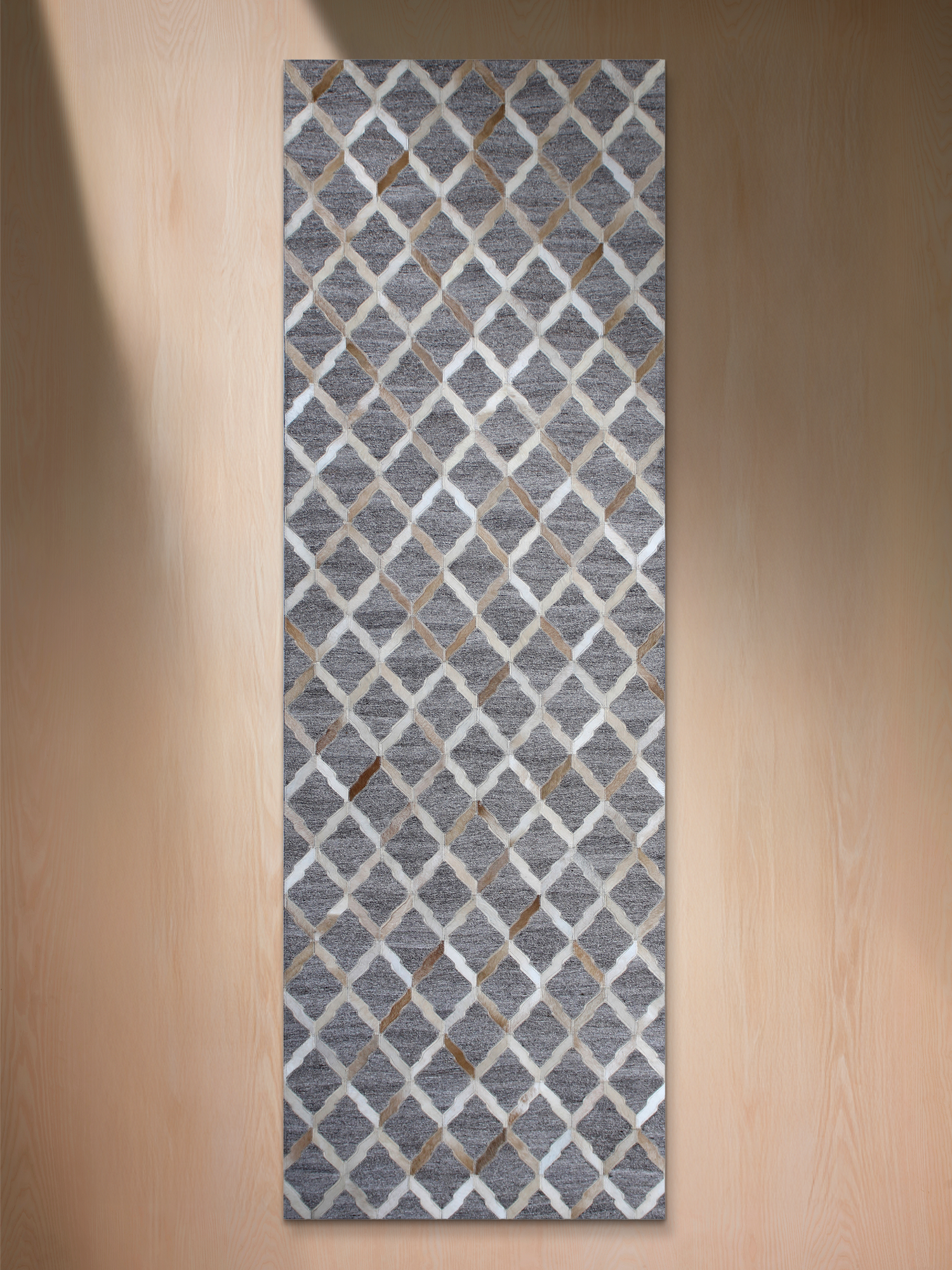 The Idris Rug is where texture meets tone. Hand-stitched from a refined blend of leather, wool, and viscose, it brings together earthy browns, greys, and soft off-whites in a geometric pattern that feels timeless and grounded. The mix of natural fibres adds durability and warmth, creating a piece that’s both striking and subtle.