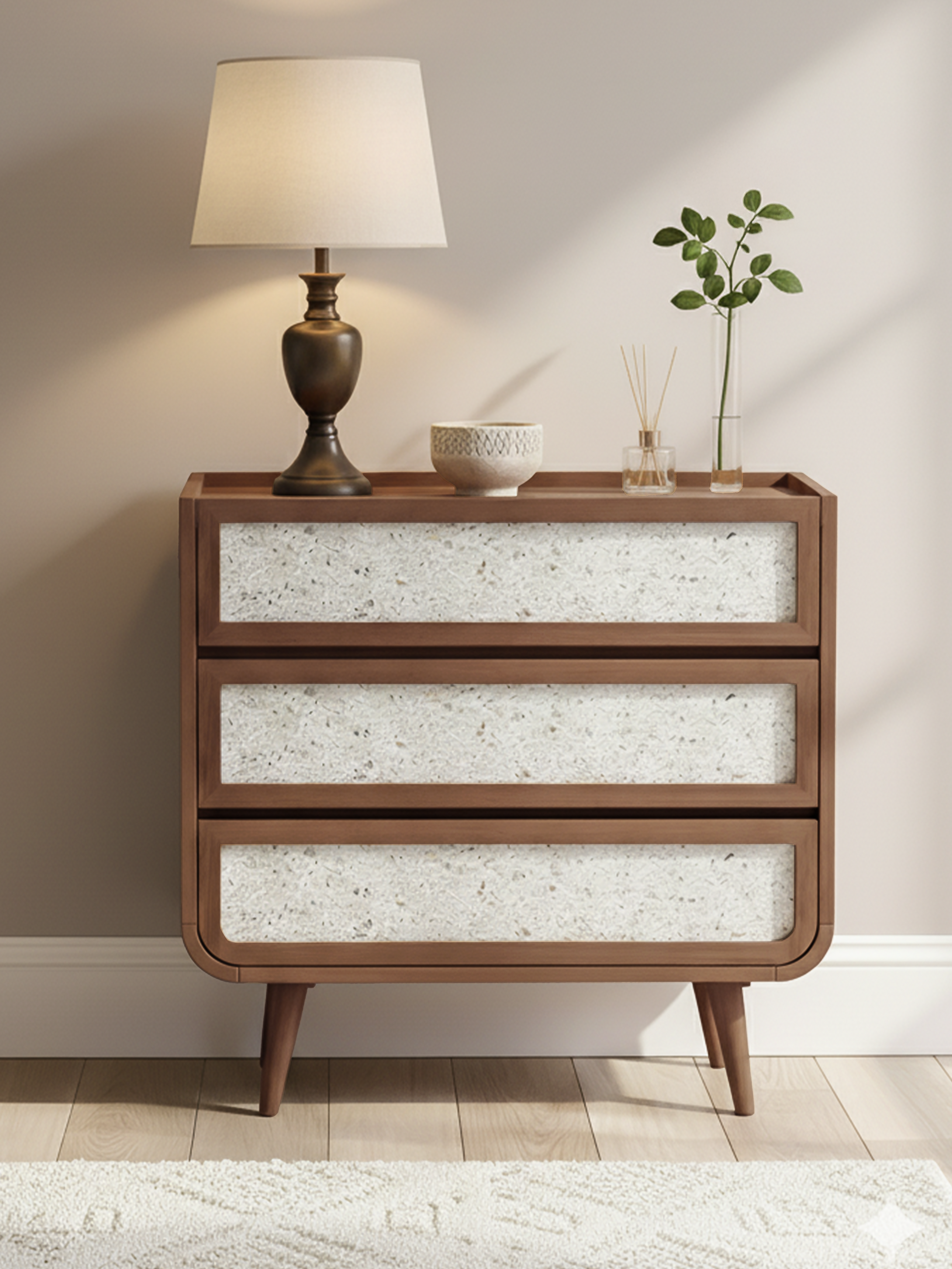 Dust your chest of drawers regularly with a soft, dry cloth, using a lightly dampened one only when needed. Keep it away from direct sunlight, heat, and moisture to avoid warping or fading. Always lift objects rather than dragging them across the surface, and check fittings occasionally to keep drawers running smoothly. If storing, ensure the piece is fully dry and follow any recommended protective treatments.