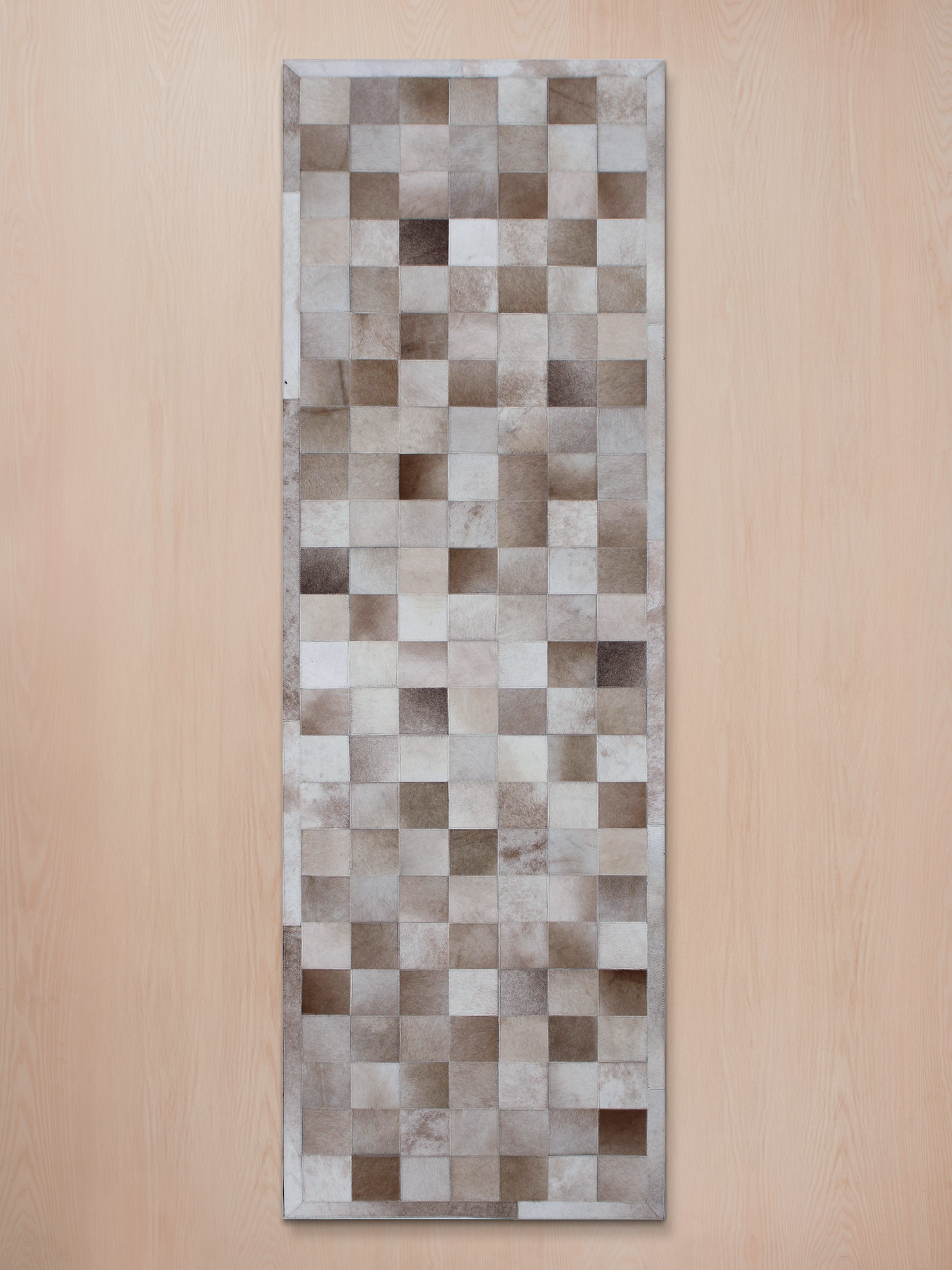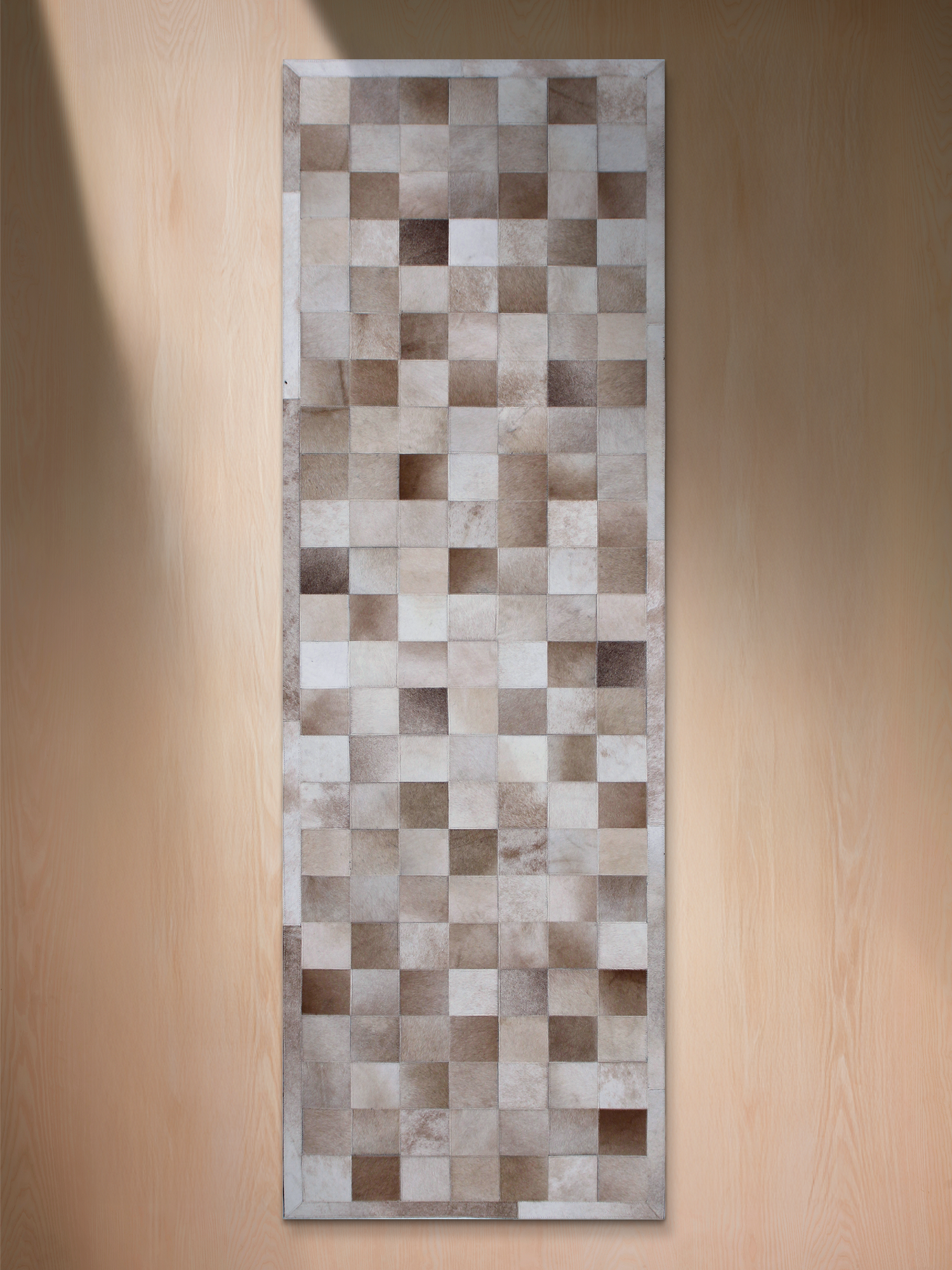 The Reyan Rug is where craftsmanship meets contemporary design. Hand-stitched from premium leather and wool, it features a mosaic of geometric patterns in beige and grey tones. The mix of materials adds texture and richness, creating a piece that’s both striking and grounded. Ideal for modern and industrial interiors, Reyan is a timeless accent that brings warmth to your home.