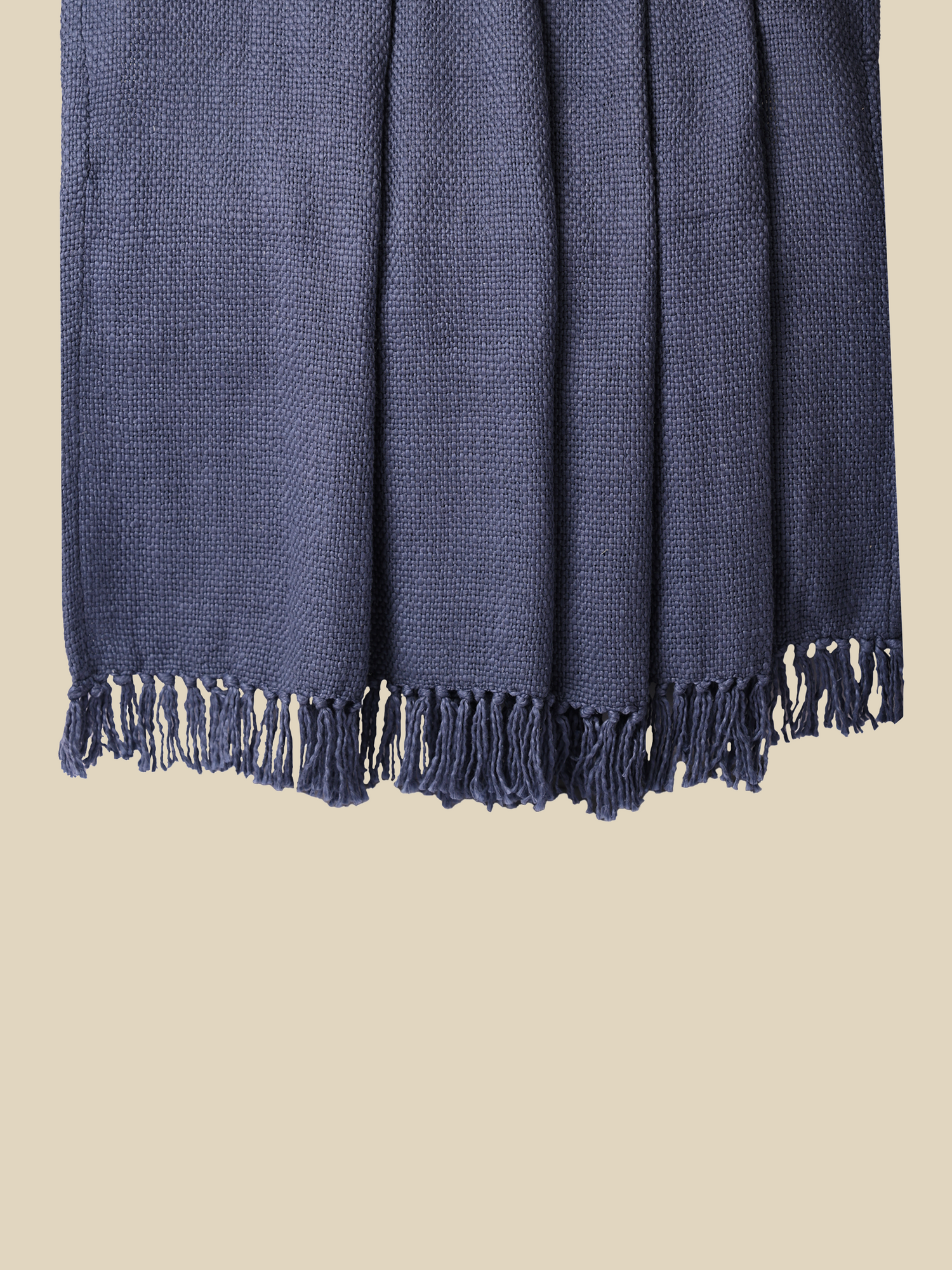 The Zahara Throw embodies modern minimalism with a touch of coastal ease. Made from pure cotton in a rich navy blue shade, its woven texture brings depth and character, while tasselled edges soften the look with playful charm. Both stylish and inviting, Zahara is perfect for draping over sofas, layering on a bed, or wrapping up on a cosy evening.